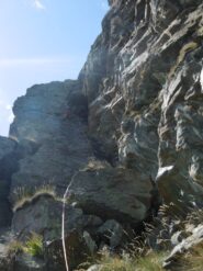 - L1 – muretto verticale fessurato e poi diedro. Partenza dura (5c) poi più semplice (4c).Chiodo e fix.