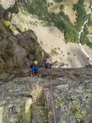 - L6 – per diedrini, placchette e cengia erbosa fino alla base del terzo diedro, leggermente a destra (5a)