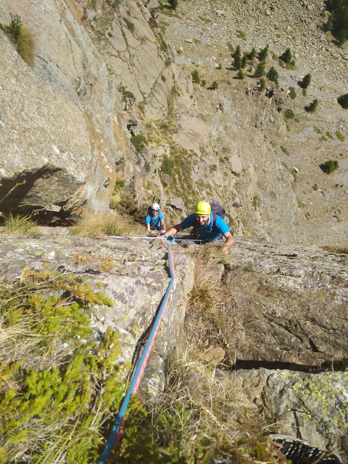 Sulla cengia alla base del terzo diedro sono presenti tre soste. La prima a destra, con cordone rosso è quella giusta. Quella con spezzone giallo non serve a niente. Quella a spit sulla sx è quella della via ‘Diamante’.—