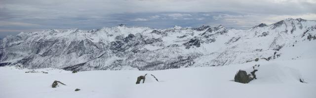 Percorsa con Elio@C (oggi gli amici hanno dato forfè, ma non sanno cosa si sono persi!); avvistato un branco di oltre venti camosci appena sopra l’alpe Raty e durante il rientro una folto gruppo di ciaspolatori sulla dorsale del mont Ros (gita sociale?).