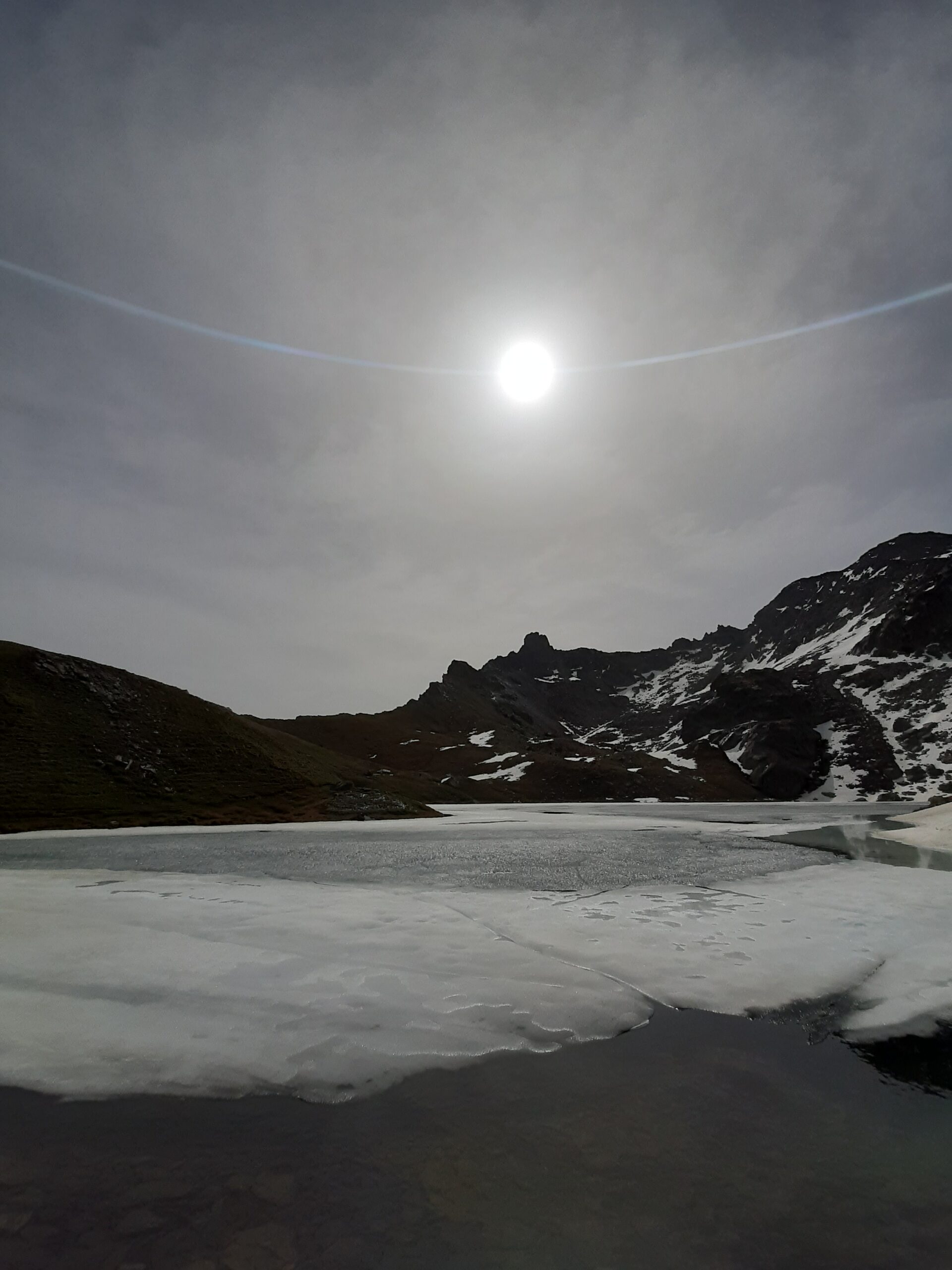 Giornata torrida, così abbiamo cercato un po’ di fresco in alto. Sempre una bella passeggiata fino al lago nero che ahimè è già in fase di sghiacciamento, oltre a questo il paesaggio sui 3000m. È angosciante per la stagione…normalmente inizia ora il bello dello skialp all’agnello, quest’anno invece si va a piedi. Dal colletto ottimi tacconi gialli, frecce, cordoni e qualche chiodo, direi che rimane difficile sbagliarsi sia per la normale che per la diretta, noi abbiamo fatto quest’ultima e l’unica cosa da segnalare è di non farsi attirare dal primo diedro che si trova sulla dx ma cercare le tacche che si infilano nel secondo. Per il resto divertente ma corta salita finale mettendo giù le mani, noi abbiamo fatto un saltino difficilotto (III) ma evitabile stando a dx nel diedro (tacca + chiodo). A mio avviso la difficoltà data la poca esposizione e la brevità del tratto duro potrebbe essere PD- come per la normale da cui siamo scesi. Con roby in ottima forma.