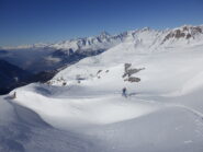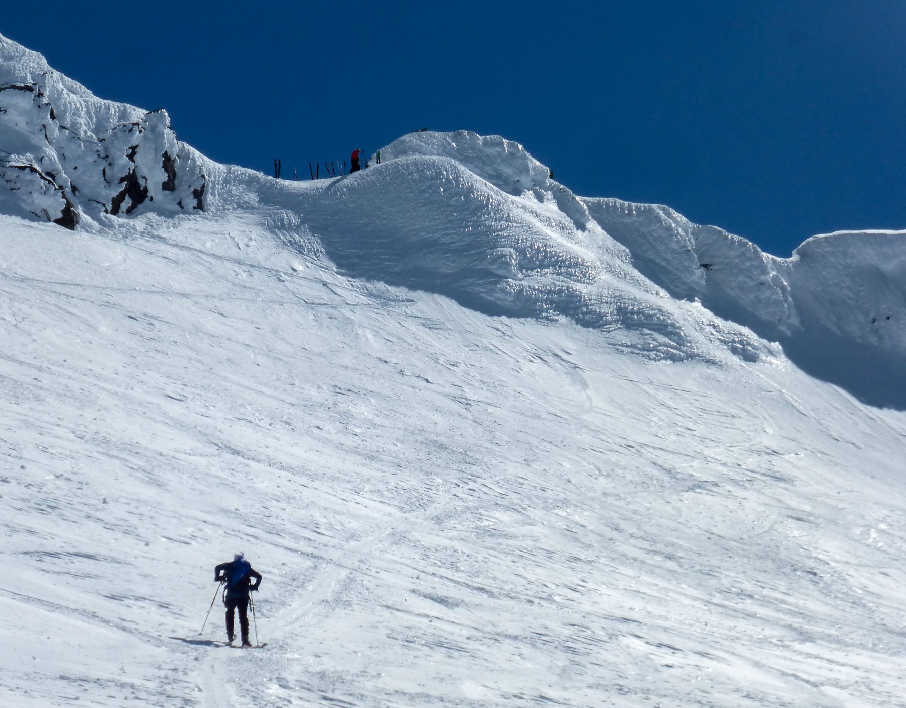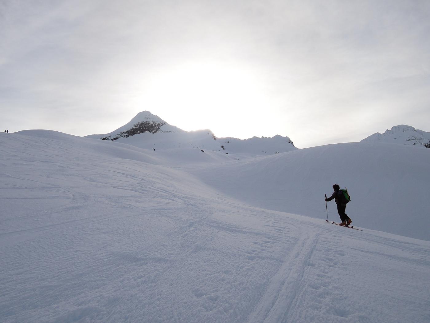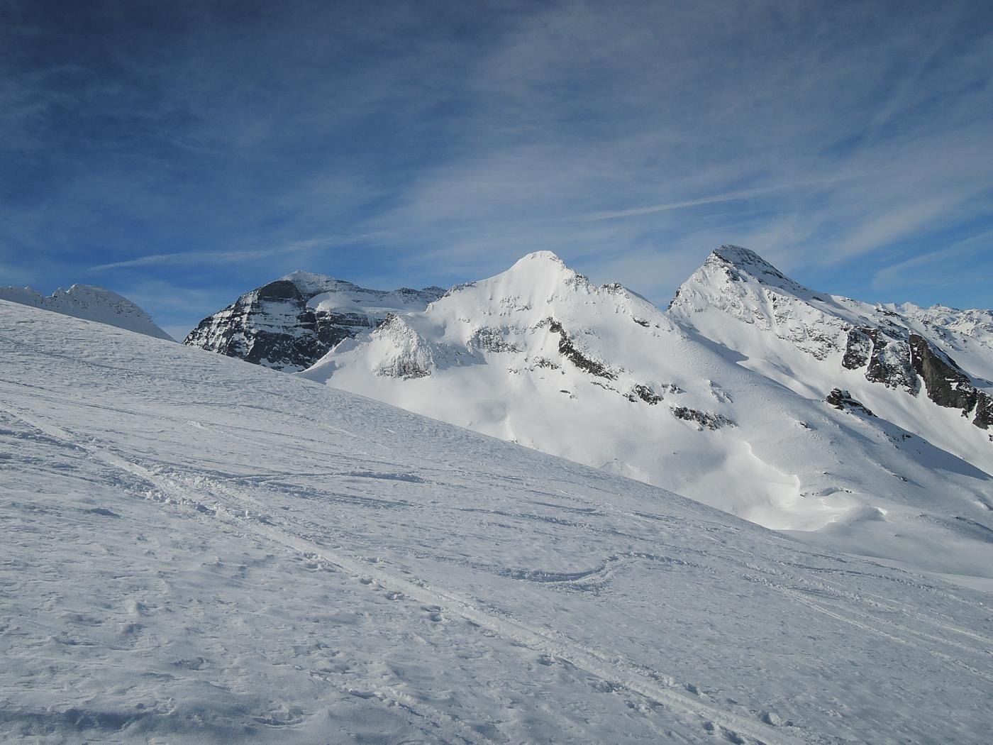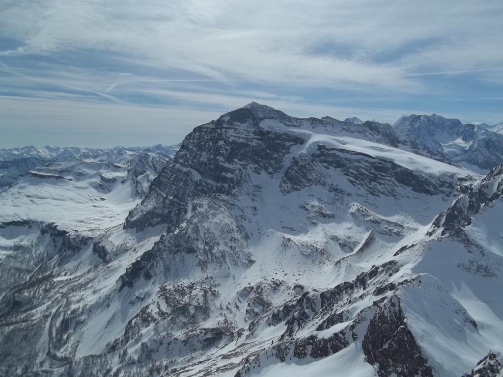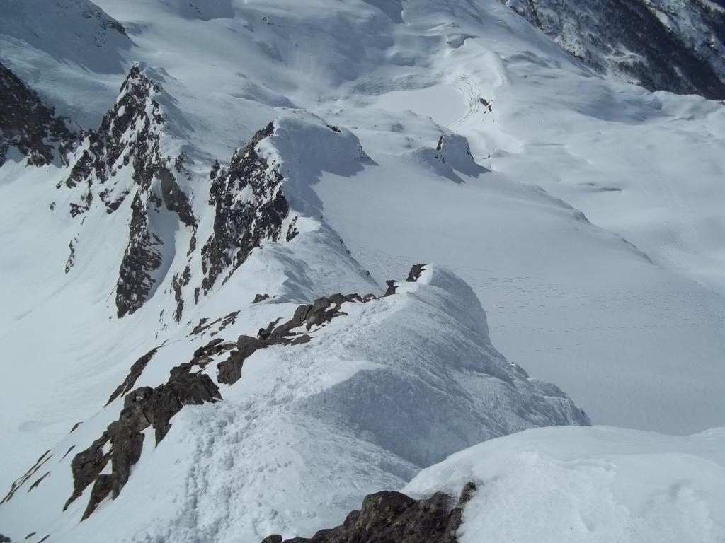 Dal tornante in località Berisal lungo la strada che dal Passo del Sempione scende a Briga si sale seguendo prima una strada carrabile e poi per il sentiero estivo fino a Bortel ( q. 2.113 Bortel Hutte); da lì per pendii aperti si tocca il Bortelgletscher e piegando decisamente a destra si giunge al coletto q. 2.986 della cresta SO. L’itinerario con gli sci termina qui. La cresta, lunga e a tratti esposta, a seconda delle condizioni può risultare più o meno impegnativa (PD, spit, breve corda fissa a 2/3 circa). Discesa lungo l’itinerario di salita o più diretta verso la punta d’aurona da cui si può tenere la sx orografica sino al torrente ove termina la stradina. La parte alta dell’itinerario è ben visibile dalla partenza.
