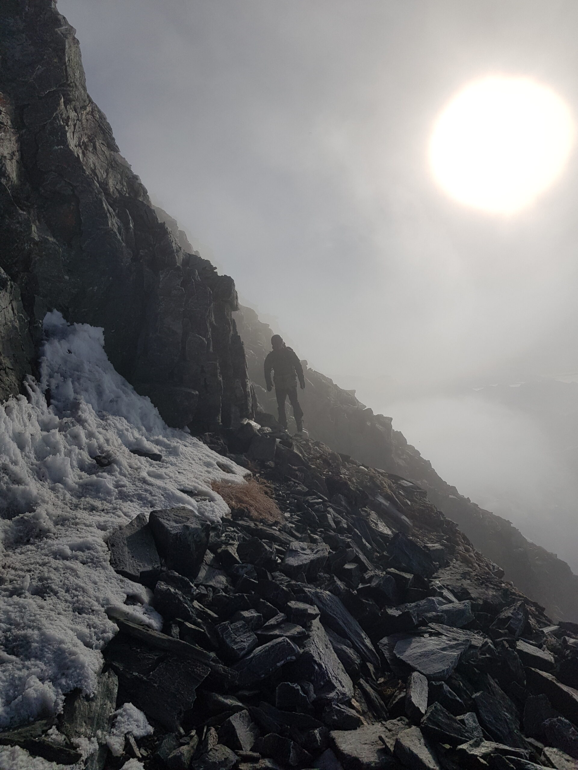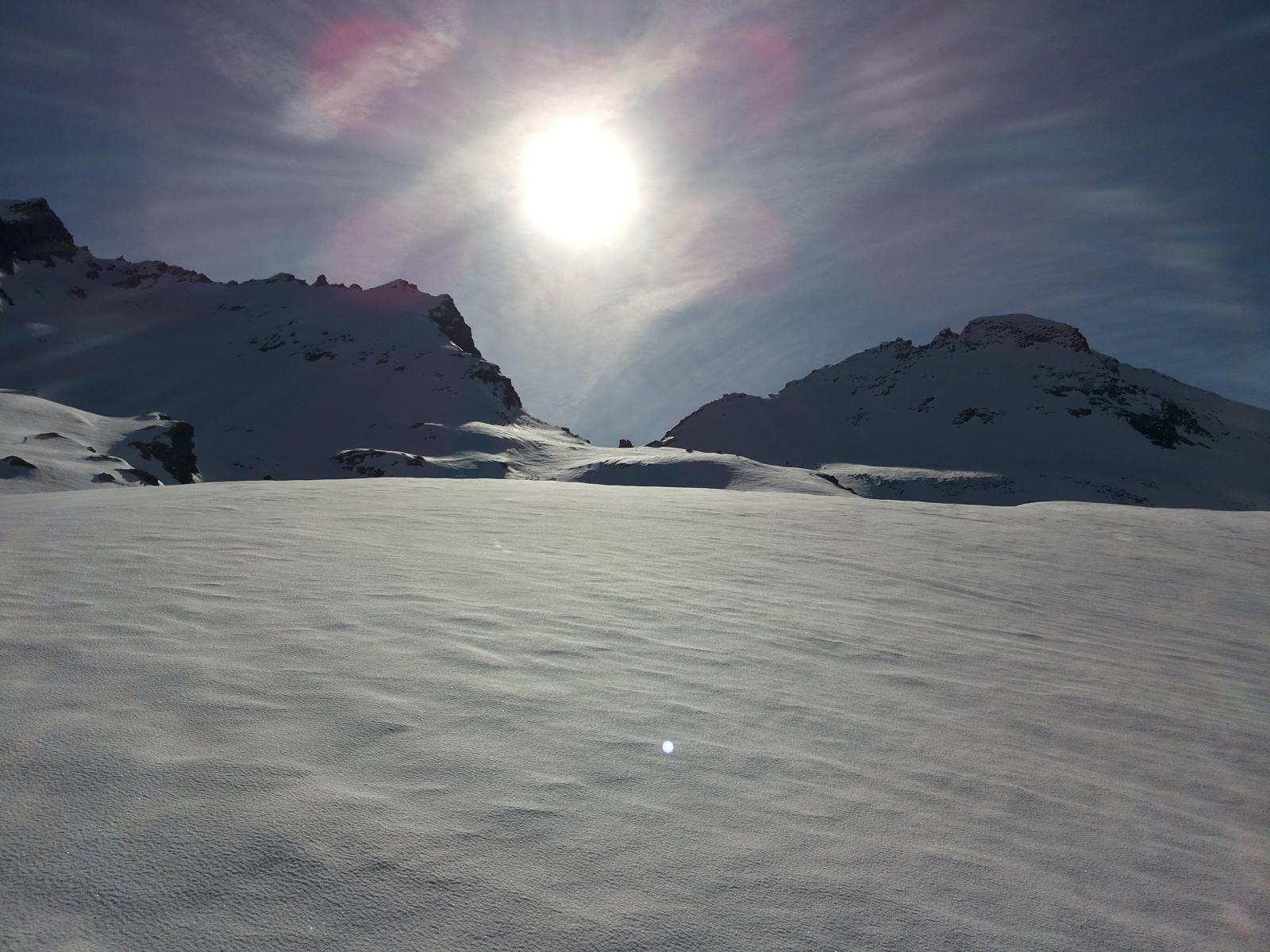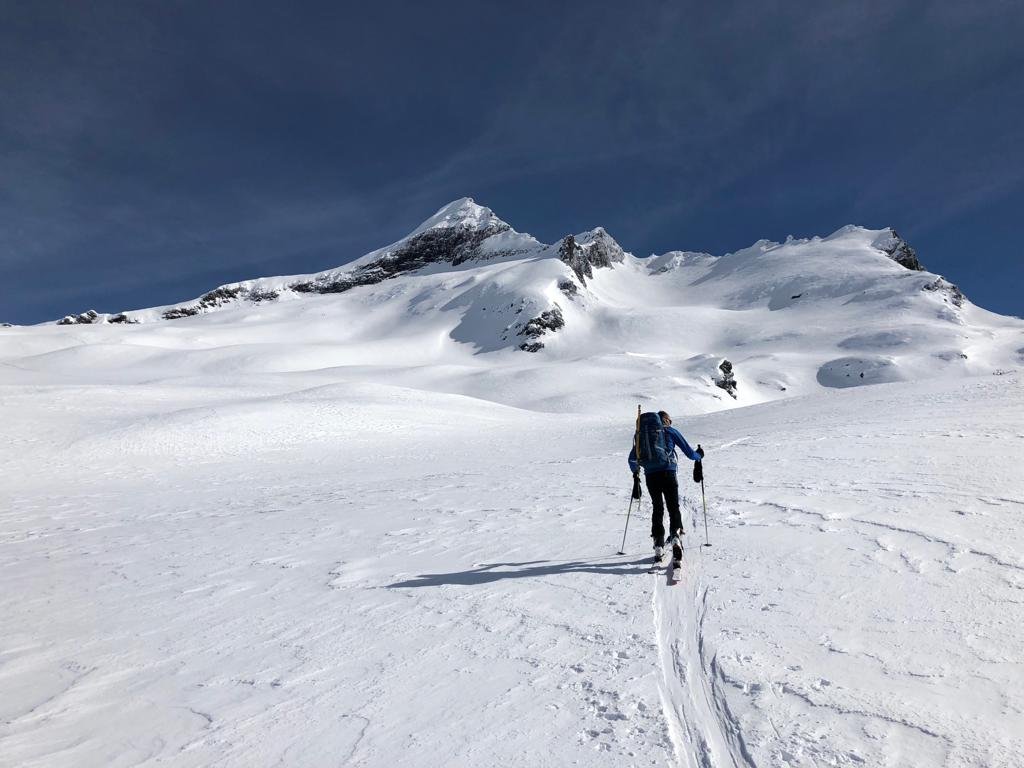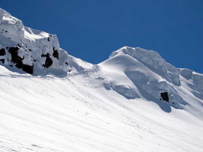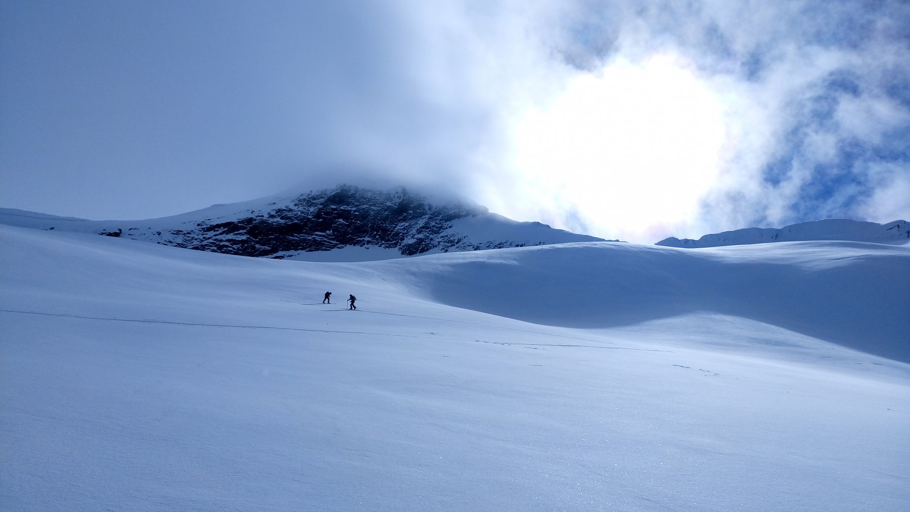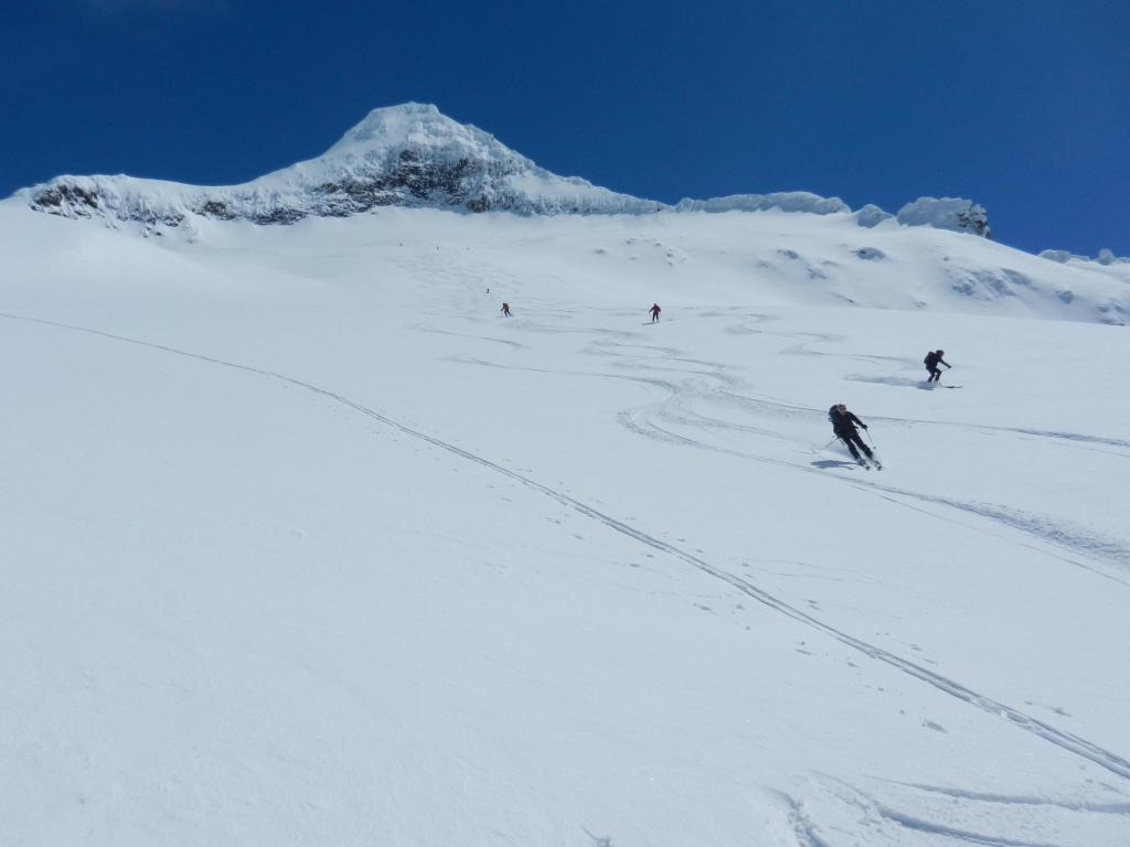 Dal tornante in località Berisal lungo la strada che dal Passo del Sempione scende a Briga si sale seguendo prima una strada carrabile e poi per il sentiero estivo fino a Bortel ( q. 2.113 Bortel Hutte); da lì per pendii aperti si tocca il Bortelgletscher e piegando decisamente a destra si giunge al coletto q. 2.986 della cresta SO. L’itinerario con gli sci termina qui. La cresta, lunga e a tratti esposta, a seconda delle condizioni può risultare più o meno impegnativa (PD, spit, breve corda fissa a 2/3 circa). Discesa lungo l’itinerario di salita o più diretta verso la punta d’aurona da cui si può tenere la sx orografica sino al torrente ove termina la stradina. La parte alta dell’itinerario è ben visibile dalla partenza.