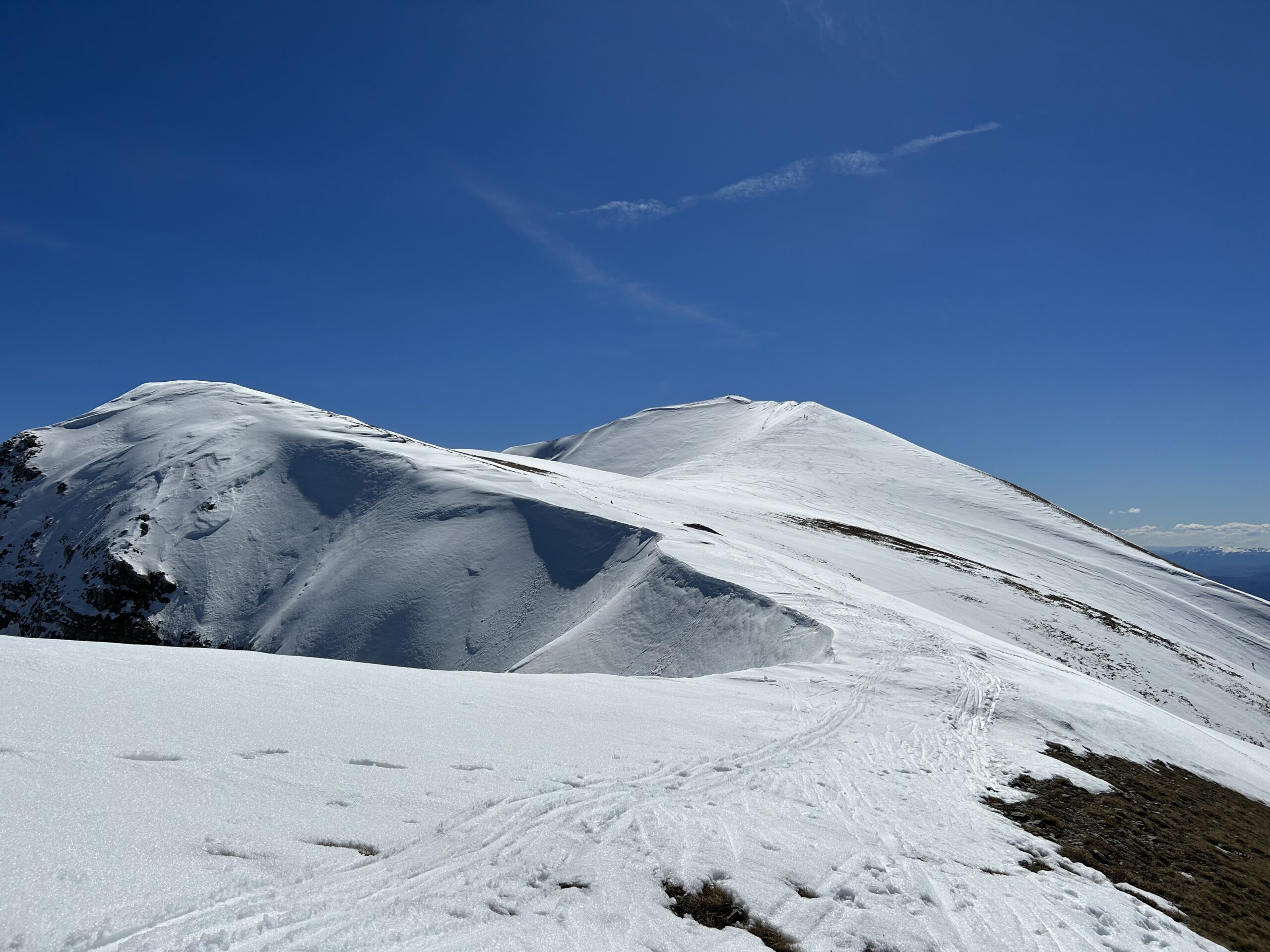 Alternativa di salita: la facile cresta nord, tutta sciabile, da Forca Viola oppure la cresta sud dal rifugio Zilioli (tratti aerei da percorrere con cautela, pericolosi con vento, cornici).
