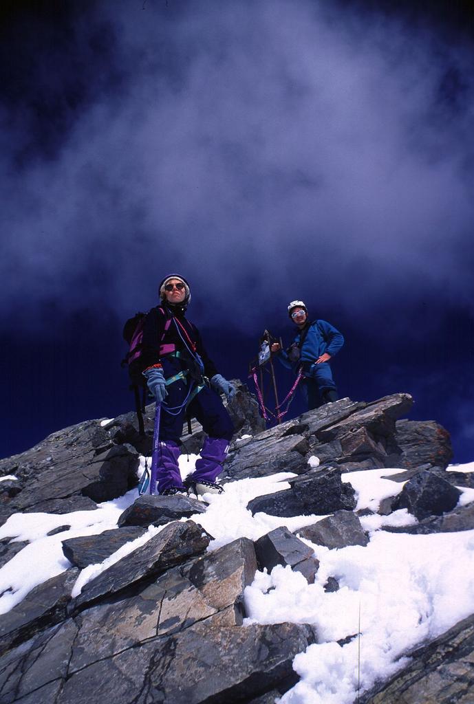 Da Fiumenereo è iniziata una lunga scarpinata che nel giro di 4 ore abbondanti ci ha portati al bel Rifugio Baroni alla Brunona del CAI Bergamo. Dove eravamo tra i pochissimi presenti, buona l’accoglienza e il trattamento ricevuto dal gestore, ci siamo trovati decisamente bene…anche la cena era ottima ! Fatta colazione, ci siamo incamminati intorno alle 6,00, trovando neve dai 2400 metri in avanti. Giornata decisamente bella con cielo sereno e visibilità ottima, per fortuna con lo zero termico non elevato. Abbiamo trovato una traccia esistente sul nevaio, che arrivava però solamente verso la Bocchetta di Scais. Dalla conoide iniziale e nel canalone…zero tracce, abbiamo provveduto noi tre. La neve era compatta e in buone condizioni di tenuta ed assestamento, la risalita del canale è filata via senza problemi (davvero un bel canale !) e anche la cresta Nord in qualche tratto affilata e i tratti di misto prima di raggiungere la cima…erano l’ulteriore tocco di classe per questa piacevole ascensione ! Davvero una gran bella montagna e una gita di soddisfazione…che ha meritato ampiamente di essere fatta ! Bellissimo panorama ammirato dalla vetta, dove lo sguardo spaziava tra quasi tutte le cime delle Orobie, e di fronte sul lato valtellinese si vedevano i Gruppi del Badile, Disgrazia, Bernina e del Cevedale…davvero incantevole ! Ci siamo trattenuti in vetta per quasi un’ora, assenza di vento e temperatura gradevole, il reportage fotografico e poi abbiamo iniziato la discesa verso il fondovalle. Oggi non c’era nessuno in giro, in vetta e nel vallone di salita eravamo presenti solamente noi tre.