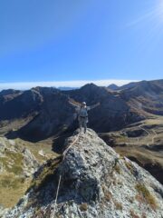 L3ha le sue difficoltà soprattutto quando si aggira a sinistra lo sperone.placca di l4delicata ma goduriosa.occhio all’uscita di l5 un po’ da ragionare.cresta facile e quasi da fare in slego così non si inchiodano le corde dietro le rientranze molto abrasive.