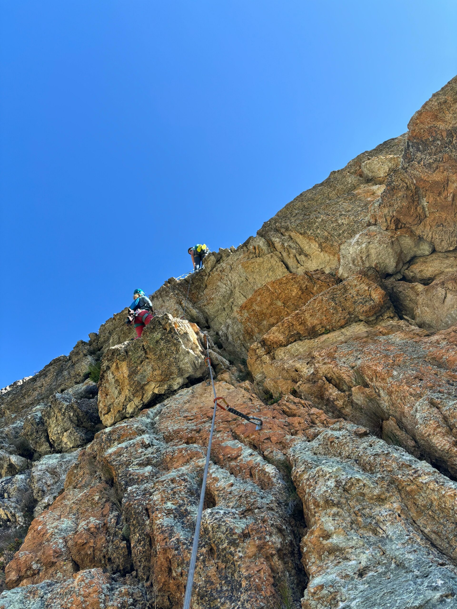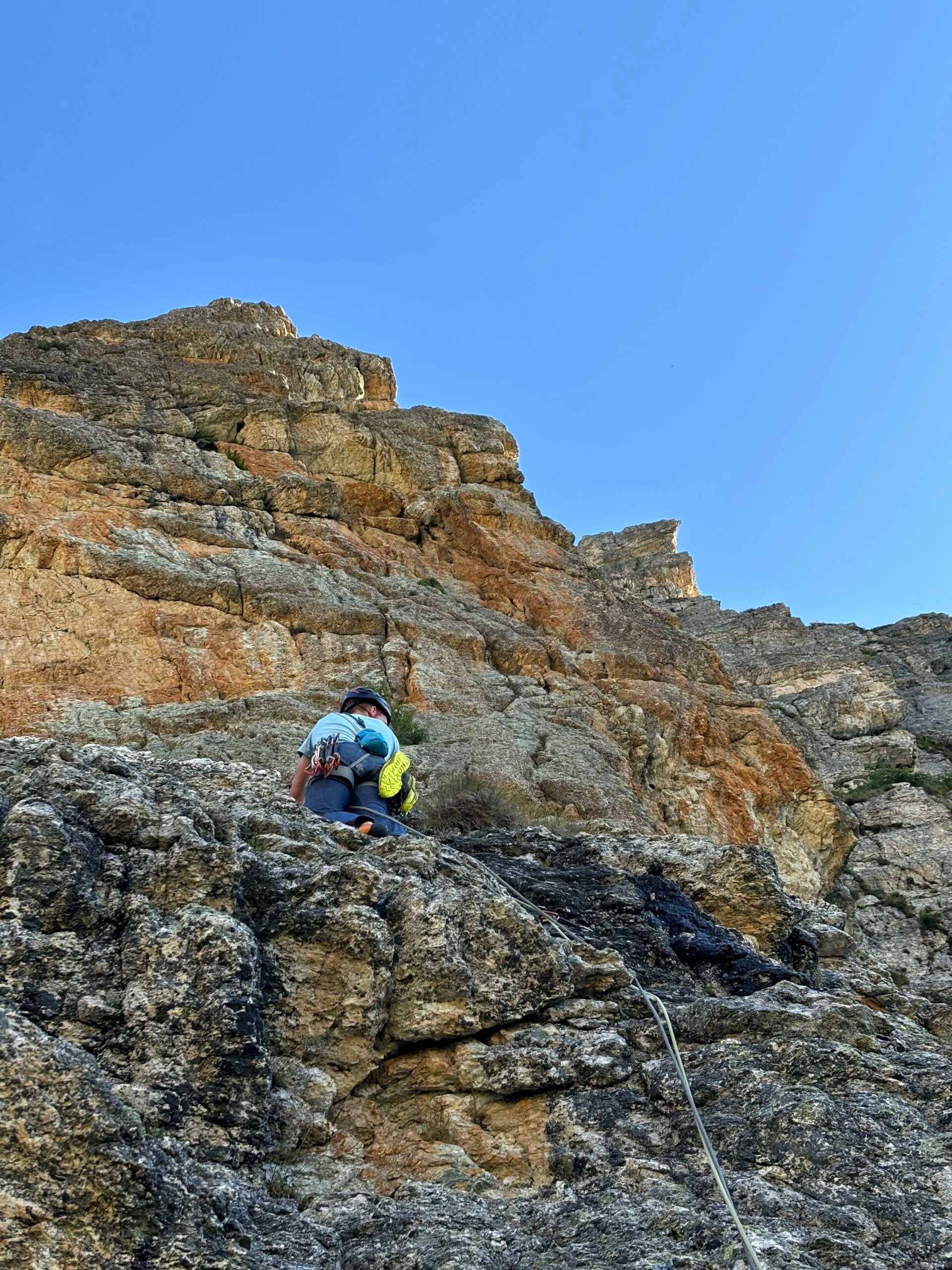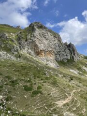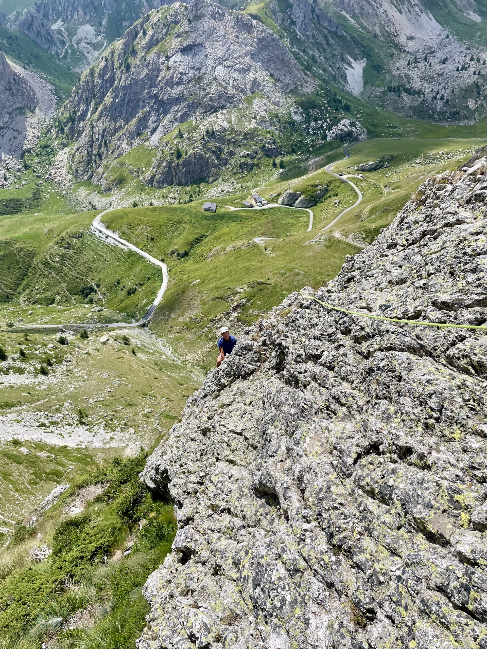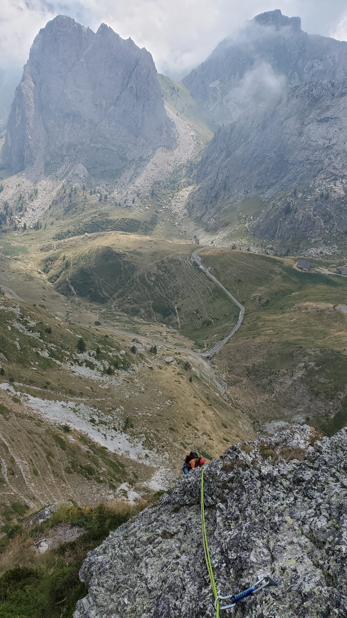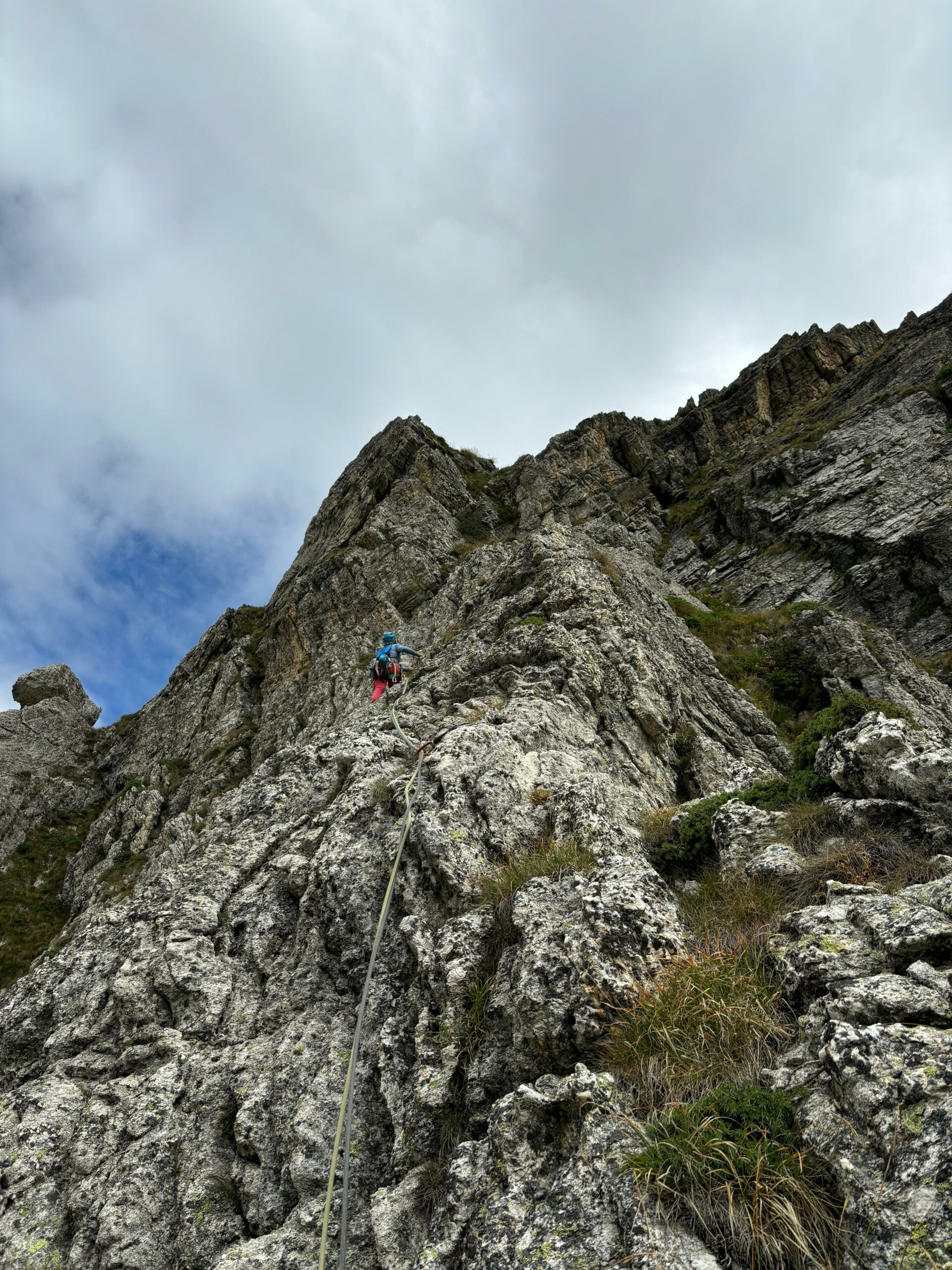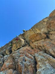 - L5 continuare sullo spigolo facendo attenzione alla roccia (ora più delicata). 5a 35 m