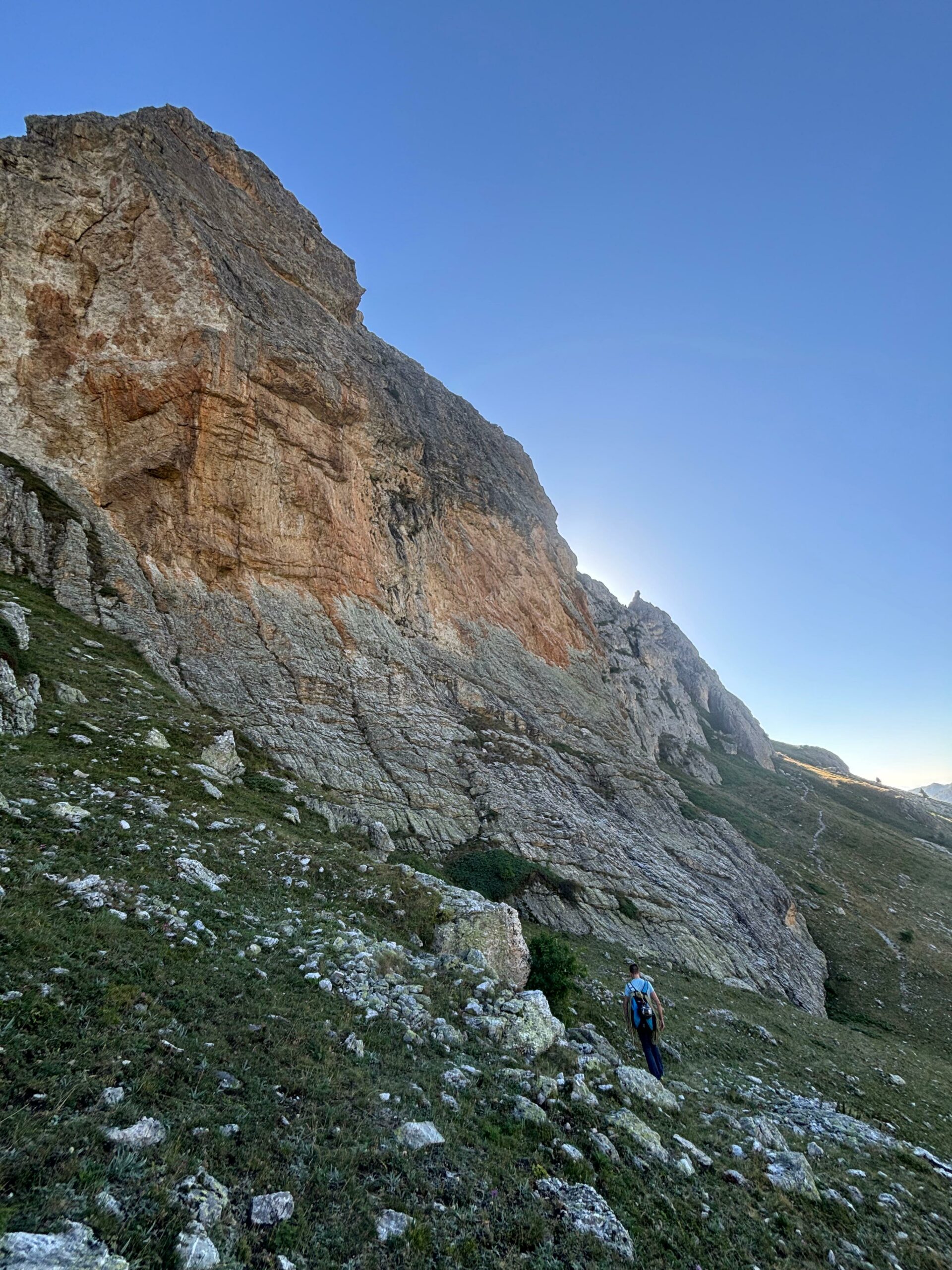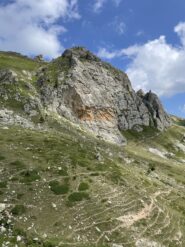 - L4 proseguire sul facile leggermente a sx della crestina spartiacque 4c 30 m