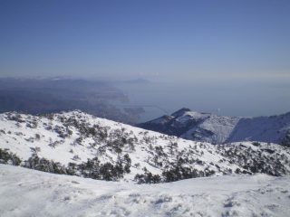 non sono un’amante del metti pelli, togli pelli,metti pelli,togli pelli,ecc, ecc,ma oggi su questa montagna a picco sul mare la neve e la giornata erano veramente eccezionali, quindi ho fatto uno strappo alla regola e devo dire che ne è valsa la pena. La neve nelle esposizioni all’ombra, verso nord, con panorama sulla pianura padana, era farina pura, mentre nelle esposizioni a sud, quindi a piccco sul mare era trasformata primaverile. che dire!!! scendi di soli 200-300 mt e poi risali e scendi da quache altra parte per altri 200-300 mt. e poi risali,e così via,fino a che ne hai voglia, ma veramente bello….!!!