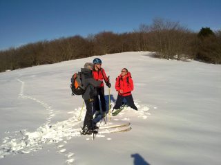 giornata soleggiata e calda! Un tiepido venticello dal mare portava sui pendii e sul crinale un vago profumo di salmastro… A sud ormai possiamo parlare di chiazze, se non avessimo visto le tracce su queste di chi ci ha preceduto… non ci avremmo creduto. A nord, subito sotto la vetta del Reixa è crosta e di quelle noiose… Abbiamo trovato qualcosa di simile alla farina nel bosco, quindi sui pendii che portano alla Palazzina Tassari polentina umida… Non si può onestamente pretendere di più con queste temperature, tuttavia, l’invidia per Larice e Skeno è cresciuta a dismisura!