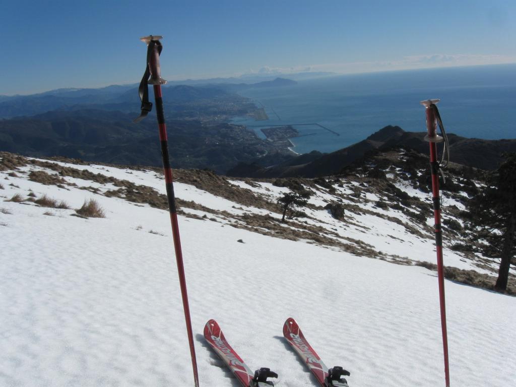 Seguito suggerimento di “larice” una puntatina vicino a casa prima che sparisca la neve. Freddo al Faiallo -2 gradi, neve di marmo cotta ieri dalla nebbia, in attesa che il sole la rendesse più agevole mi sono diretto verso ovest, lato Argentera per vedere altri canali, sono senza neve. Ritornato al Reixa disceso lato fonte Leone/ Garduin su neve primaverile, sotto siamo veramente al limite. Anche se la striscia del canale Malanotte è stretta, neve primaverile e divertente discesa sino sopra la forra. Un saluto alle altre due persone incontrate nel canale, il genovese e il milanese.