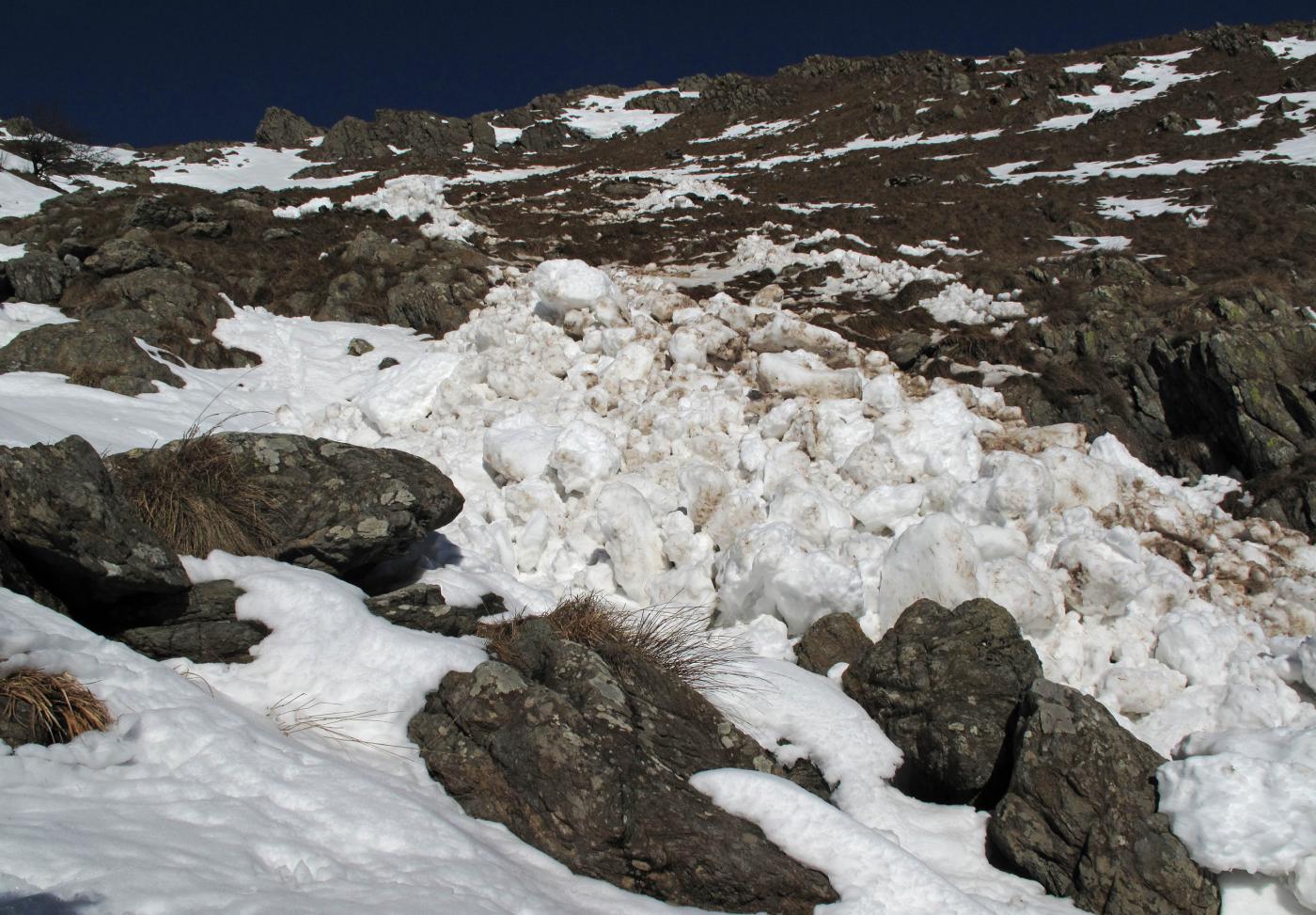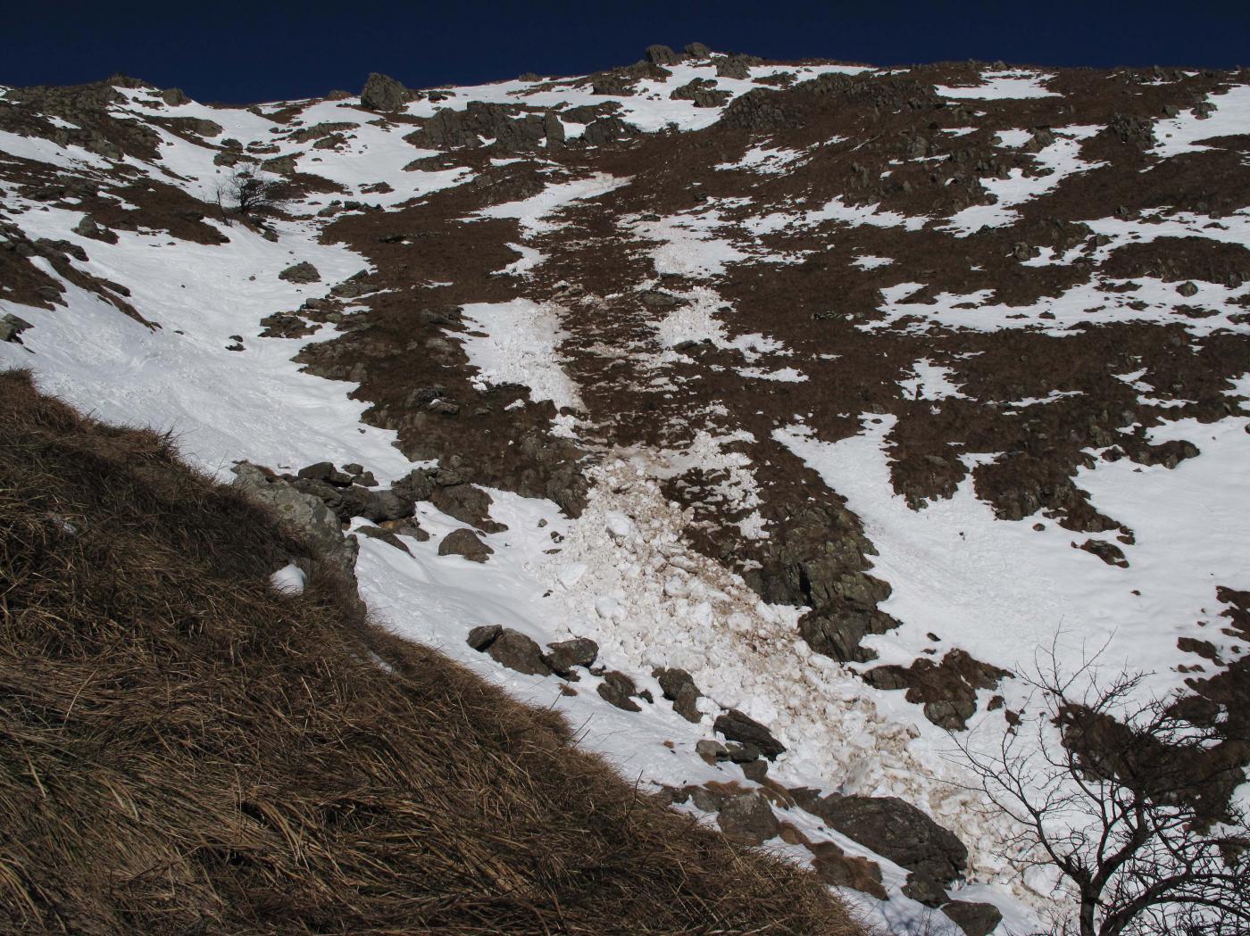 Il Passo del Faiallo non c’è verso che venga aperto per cui abbiamo fatto il giro da Tiglieto. Giornata spettacolare senza una bava di vento. Disceso il Malanotte su neve sciabile ma un po’ pesante, fino all’inizio della forra dopo aver superato un tratto battuto da una non banale valanga di fondo veramente inusuale per questi ambienti. Come si vede in una delle 4 foto della valanga c’è ancora un fronte pronto a staccarsi e precipitare come il precedente sul canale, che comunque non è stato del tutto ostruito. Poi bellissima discesa a sud fino a 50 metri dalla Fonte del Leone e ancora lungo il canalone del Guardin (alle 13). Neve a sud se n’è sciolta parecchia ma è bella. A nord invece la neve è veramente abbondante e a tratti si trova anche farina, ma era tardi. Arrivati fino alla confluenza dei due fiumi dove si sprofondava senza sci fino alla cintola. Alla fine 1300 metri di dislivello in questo ambiente che rimane sempre affascinante. Con Sergio e un saluto agli amici andati in alpe (gruppo Gazzano) che sono arrivati a casa prima di noi!. Un altro saluto a Bob ed ai suoi amici di Savona che ci hanno preceduto sul Malanotte e che incontrati mentre salivano ci hanno dato utili indicazioni sulla neve e sulla valanga