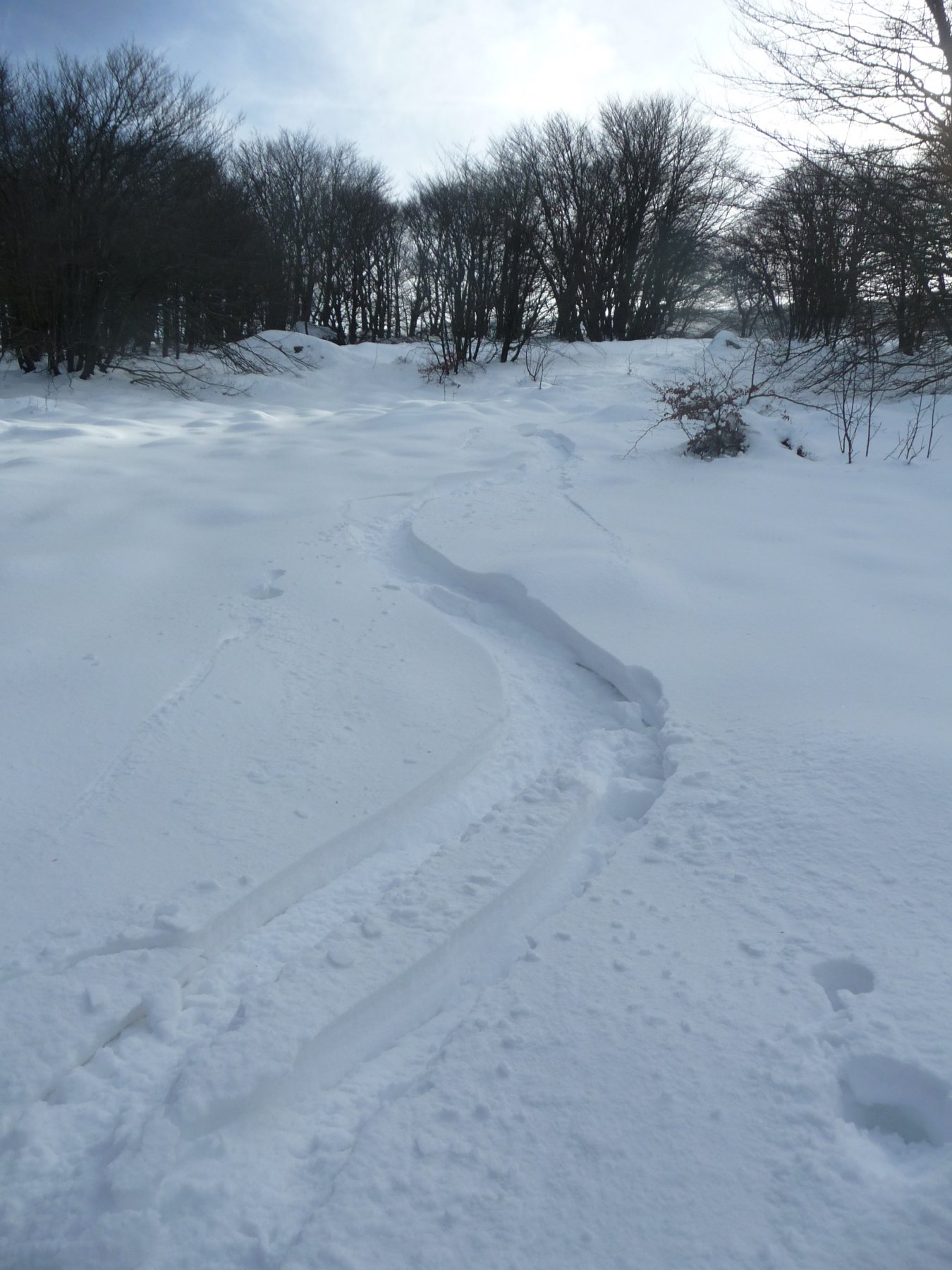 Brutta sorpresa salendo da Voltri strada pulitissima ma chiusa a circa 5km dal passo… Quindi aggiunta passeggiatina… Menomale che al ritorno ho scroccato un passaggio (grazie)… Salito in vetta sceso il Malanotte al primo giro molto bello, risalito a puntato il vallone sud più a ovest ma qui la neve non era un gran che… Ritornato in vetta ancora un giro sul Malanotte ora un po’ più tritato e una discesina a Nord… Beh sciando guardando le navi che entrano in porto…