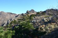Da Case Soprane 150m percorso un breve tratto della sterrata si abbandona il sentiero “triangolo rosso” per svoltare a dx sul sentierino “stella bianca” che sale ripido, stretto e panoramico sino ad incrociare il sentiero “dell’ingegnere” che proviene da sx, lo si percorre per un tratto (a dx) e al bivio si svolta a sx (sempre sul “stella bianca” ) salendo alla dorsale alla Gua dell’Omu 550m, la Gua de Bute 700m, si percorre ancora la dorsale del Capo alla Rocca Turchina a raggiungerne il successivo colletto della Collettassa 960m m (dove da sx arriva il sentiero che sale dal rif Padre Rino) si prosegue verso nord e di li a poco il percorso si inerpica e a continue strette svolte raggiunge, da ovest, le roccette della sommità del monte Argentea 1082m.