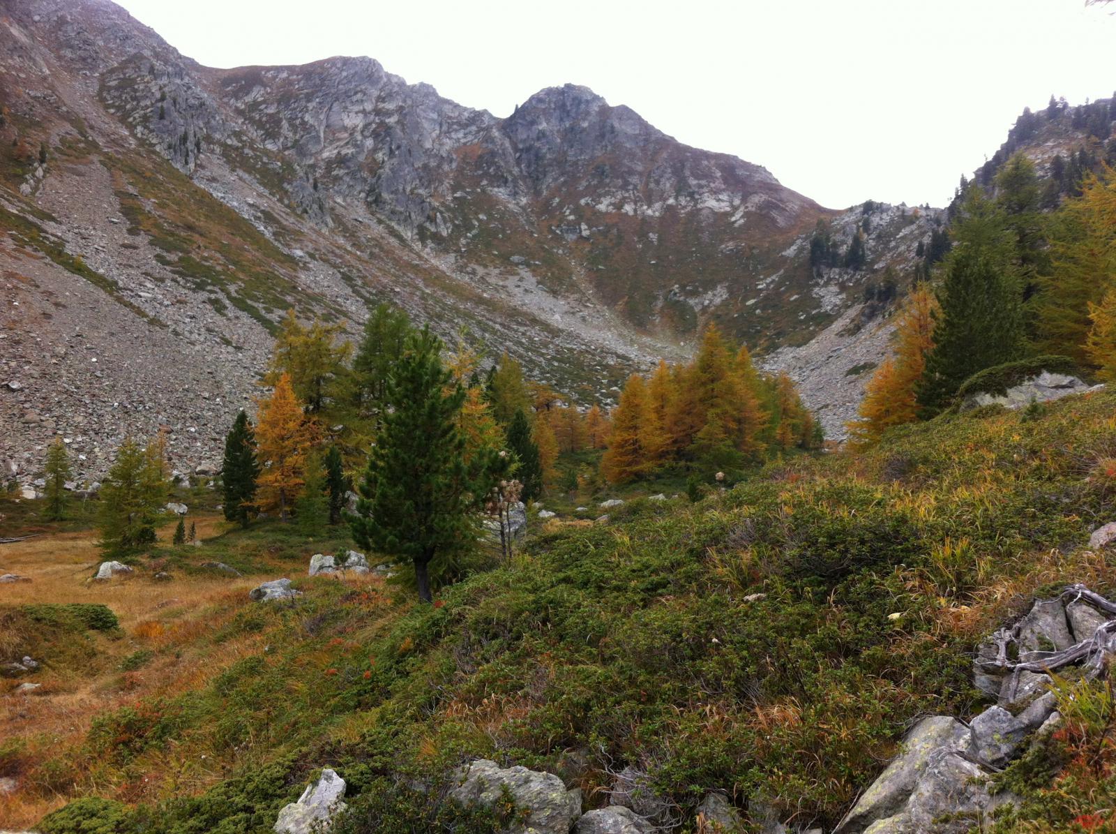 NB: il sentiero, segnato sulle carte Kompass e IGC, che dalle baite Cialvrina scende a Champsil, non esiste più ed è quindi impossibile chiudere l’anello.