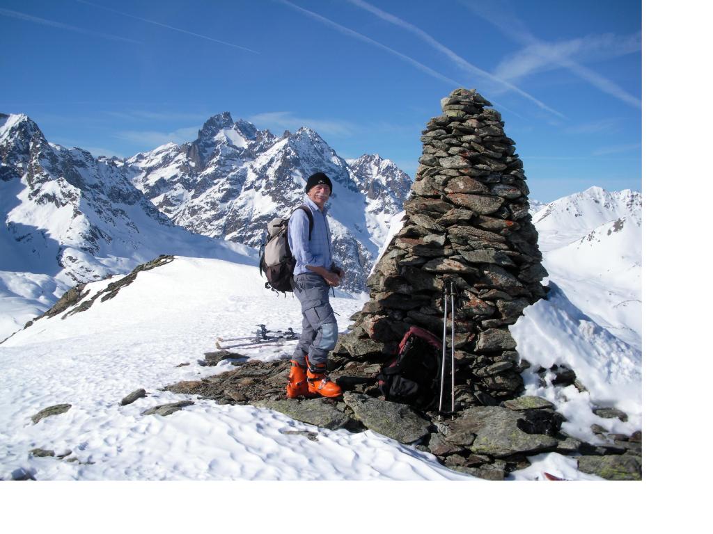 Gita in ambiente fantastico con suggestivi scorci sul Pic Gaspard e buona parte del massiccio del Delfinato in un tripudio di luci, colori, caldo, cieli azzurri, e tanta bella neve.Con Franco