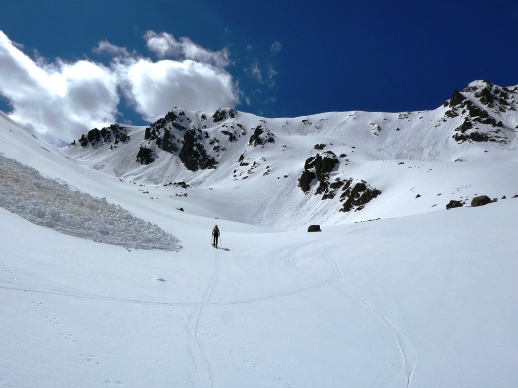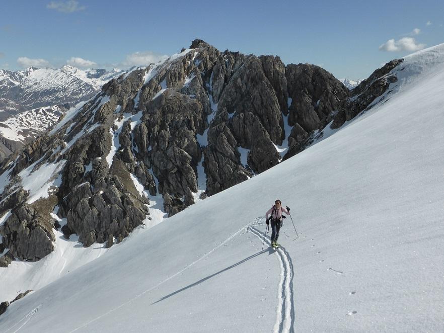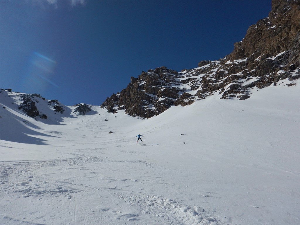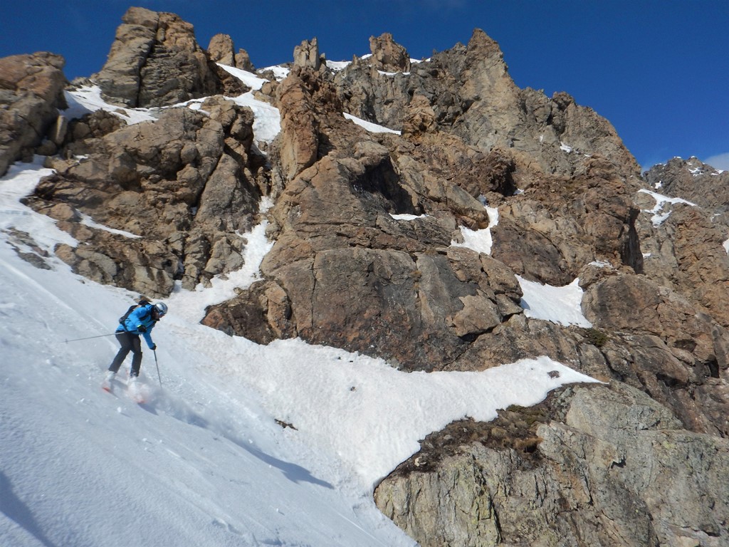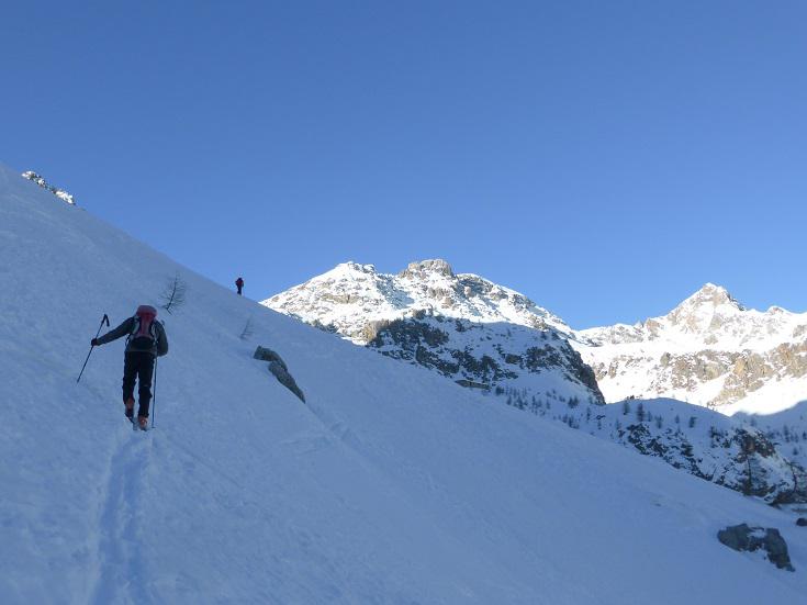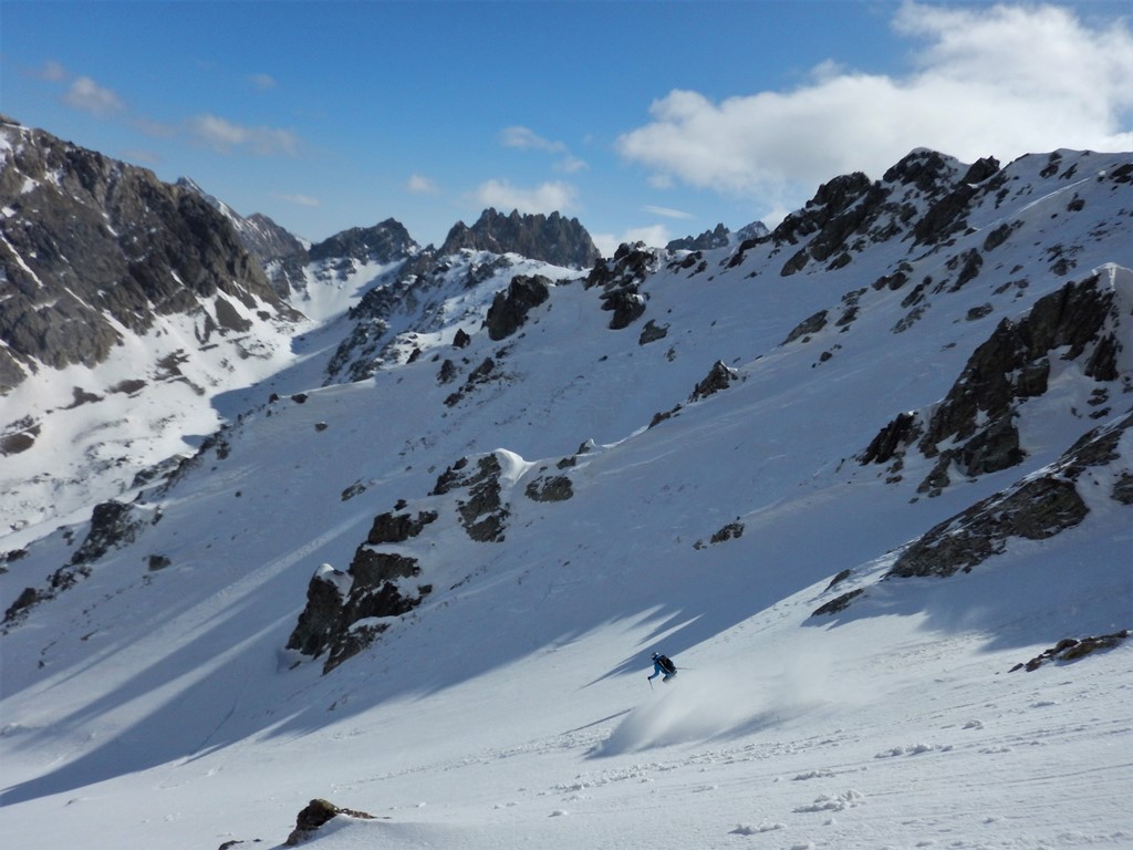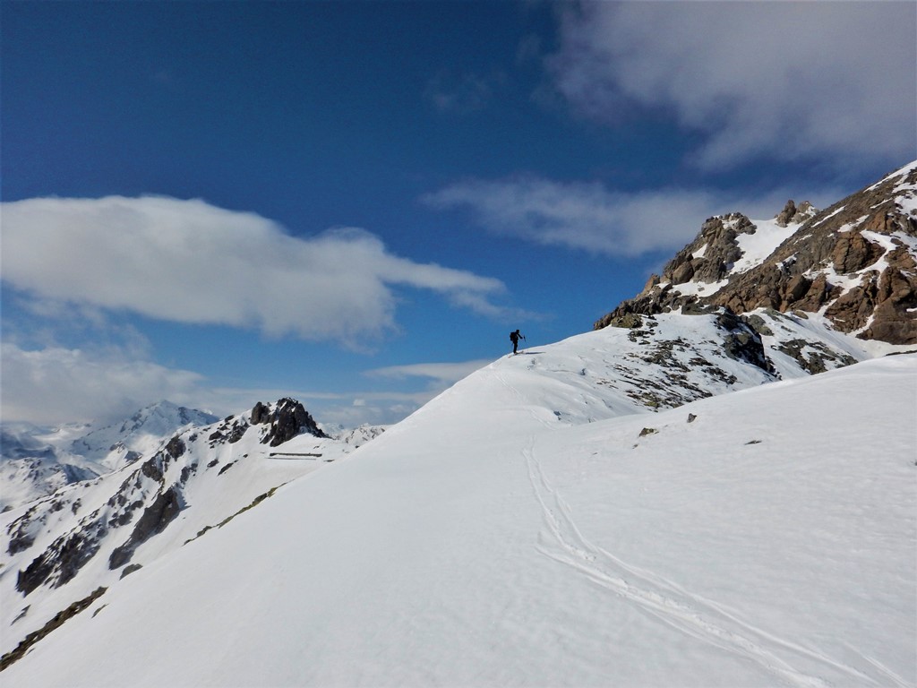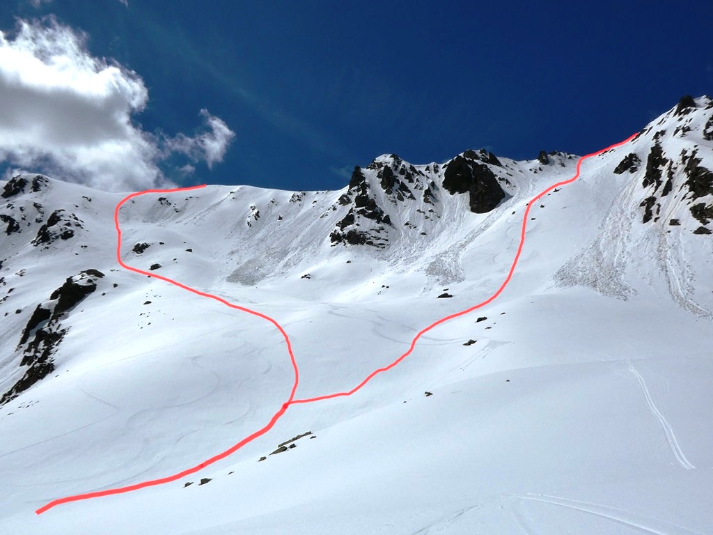 Ci si accede tramite un valloncello appartato su pendii sempre mediamente ripidi e ben esposti a nordest prima e a nord in alto. Dalla vetta posta fra i passi la Croce Or. e Occ.ottimo panorama sull'alta val Stura.
