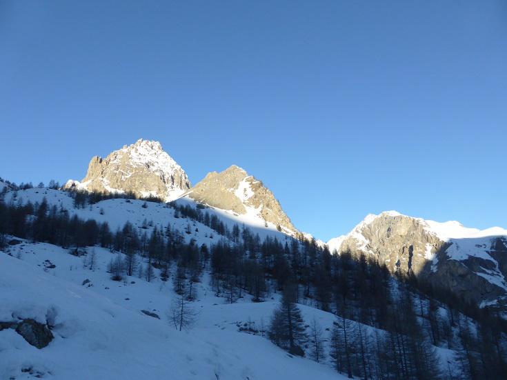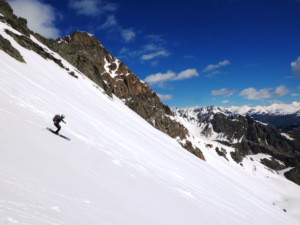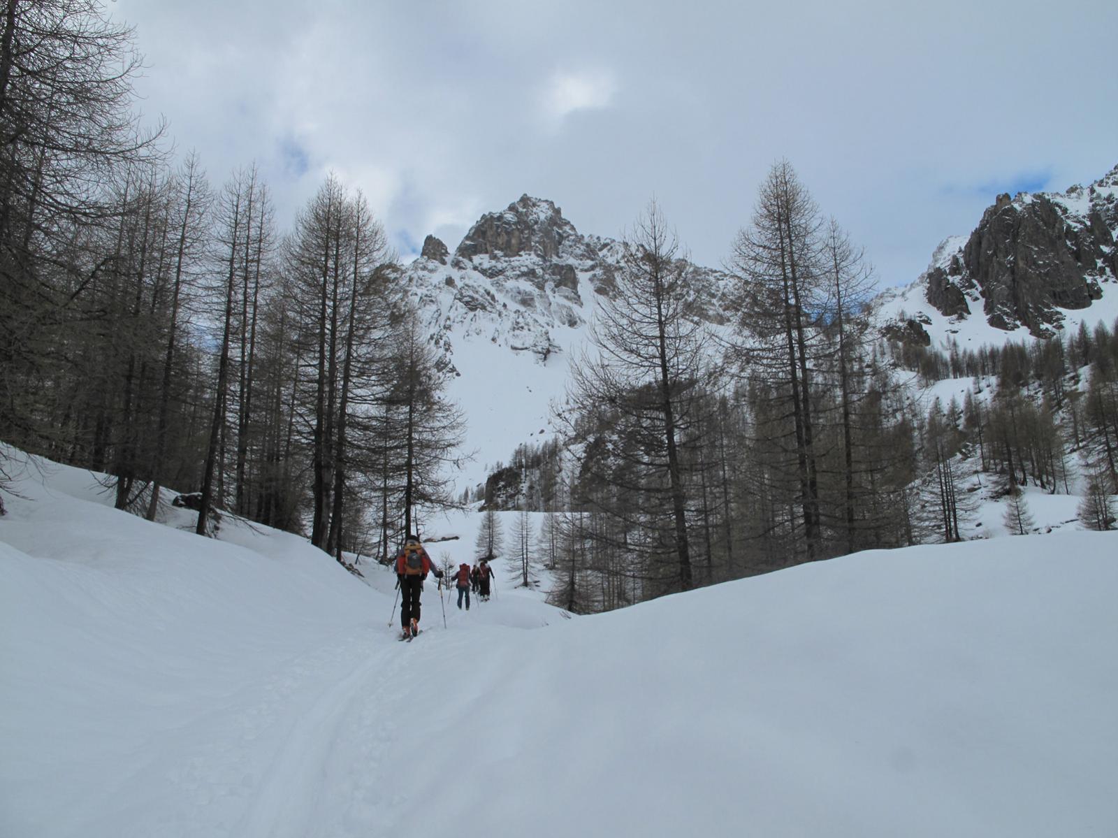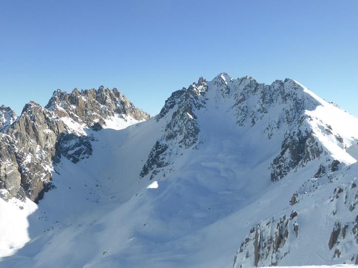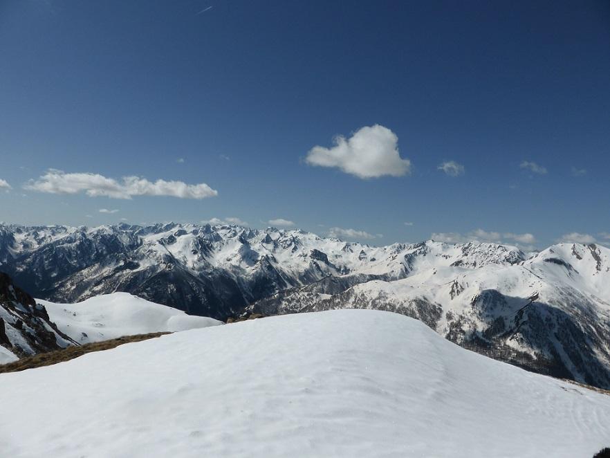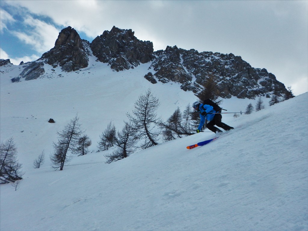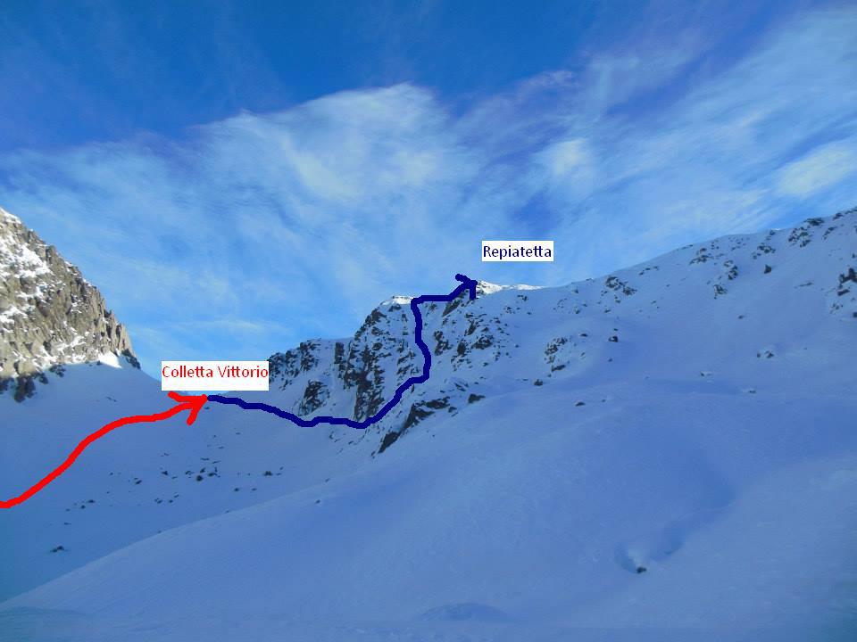 Ci si accede tramite un valloncello appartato su pendii sempre mediamente ripidi e ben esposti a nordest prima e a nord in alto. Dalla vetta posta fra i passi la Croce Or. e Occ.ottimo panorama sull'alta val Stura.