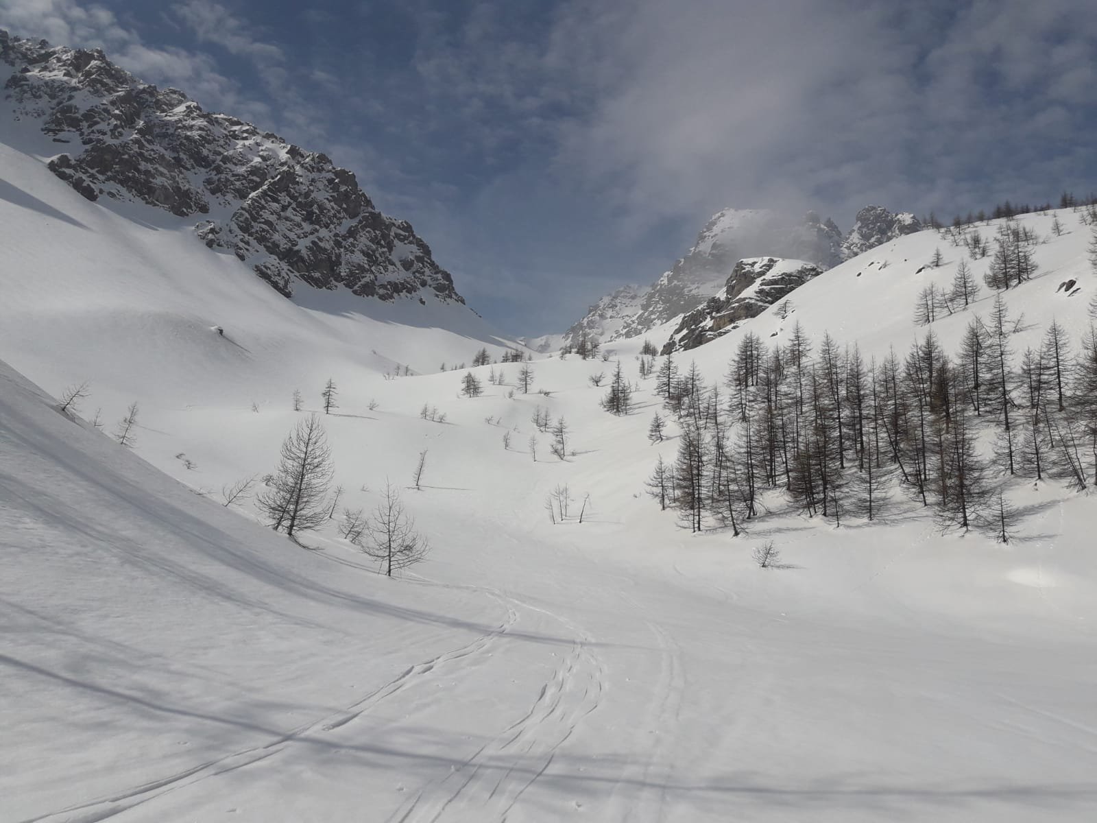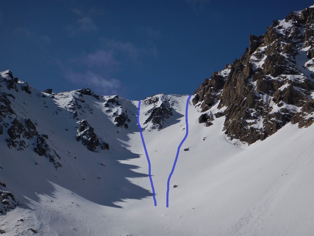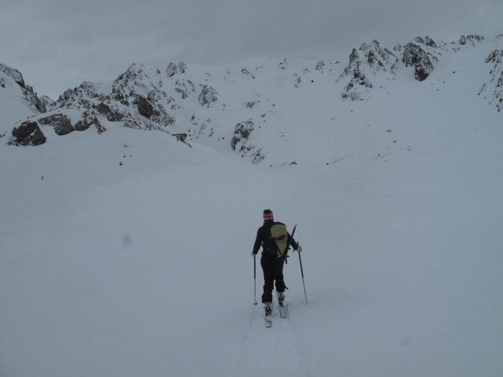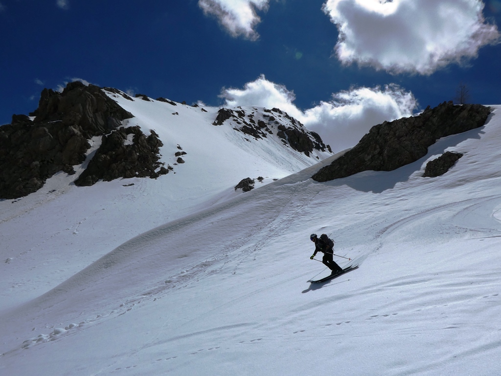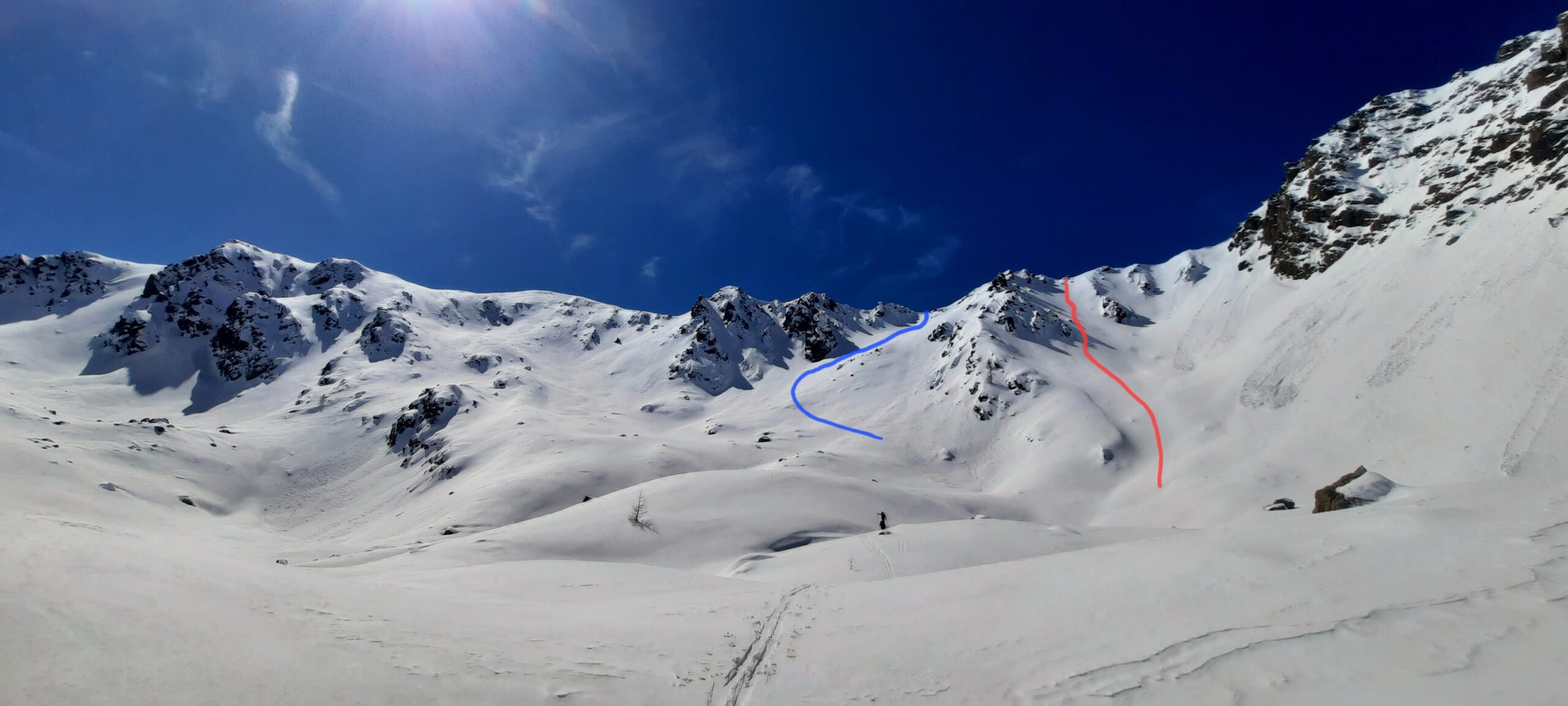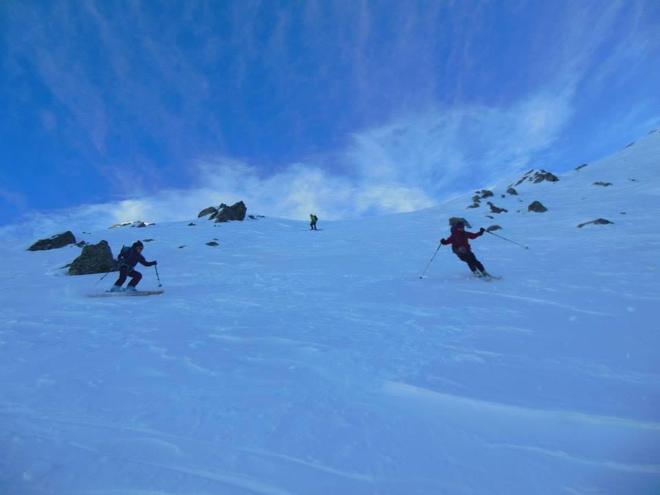 Ci si accede tramite un valloncello appartato su pendii sempre mediamente ripidi e ben esposti a nordest prima e a nord in alto. Dalla vetta posta fra i passi la Croce Or. e Occ.ottimo panorama sull'alta val Stura.