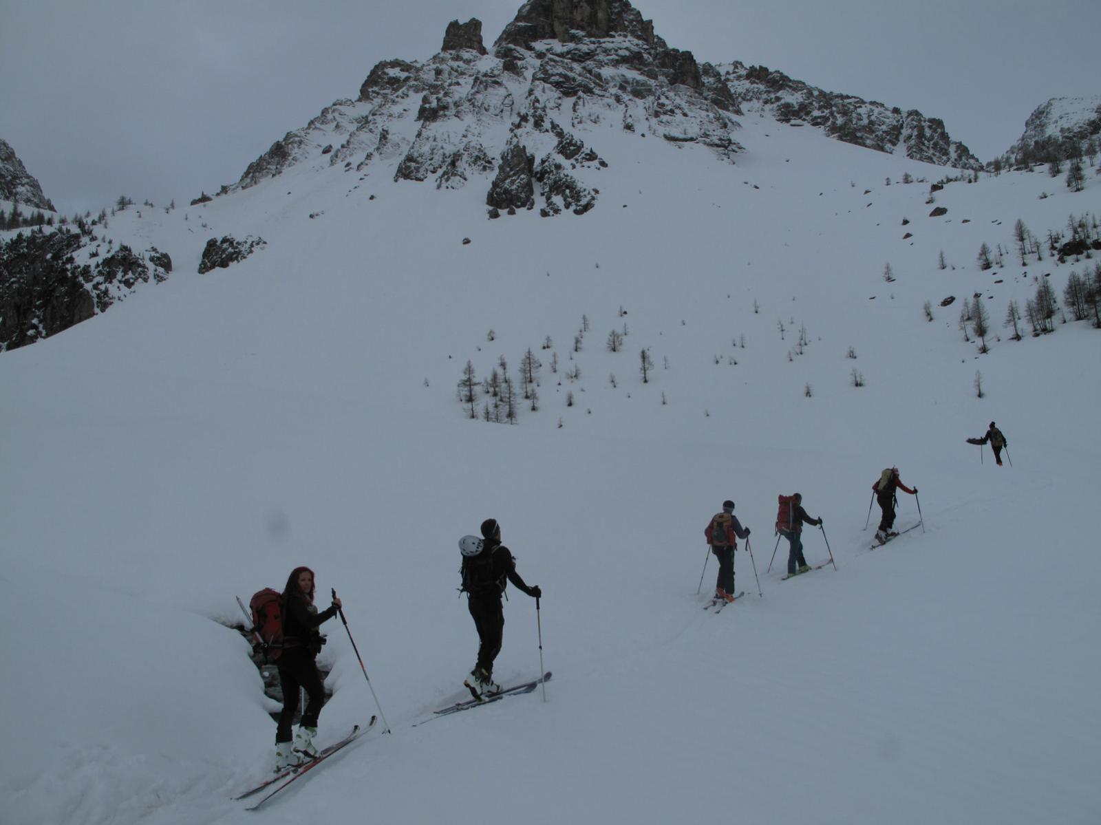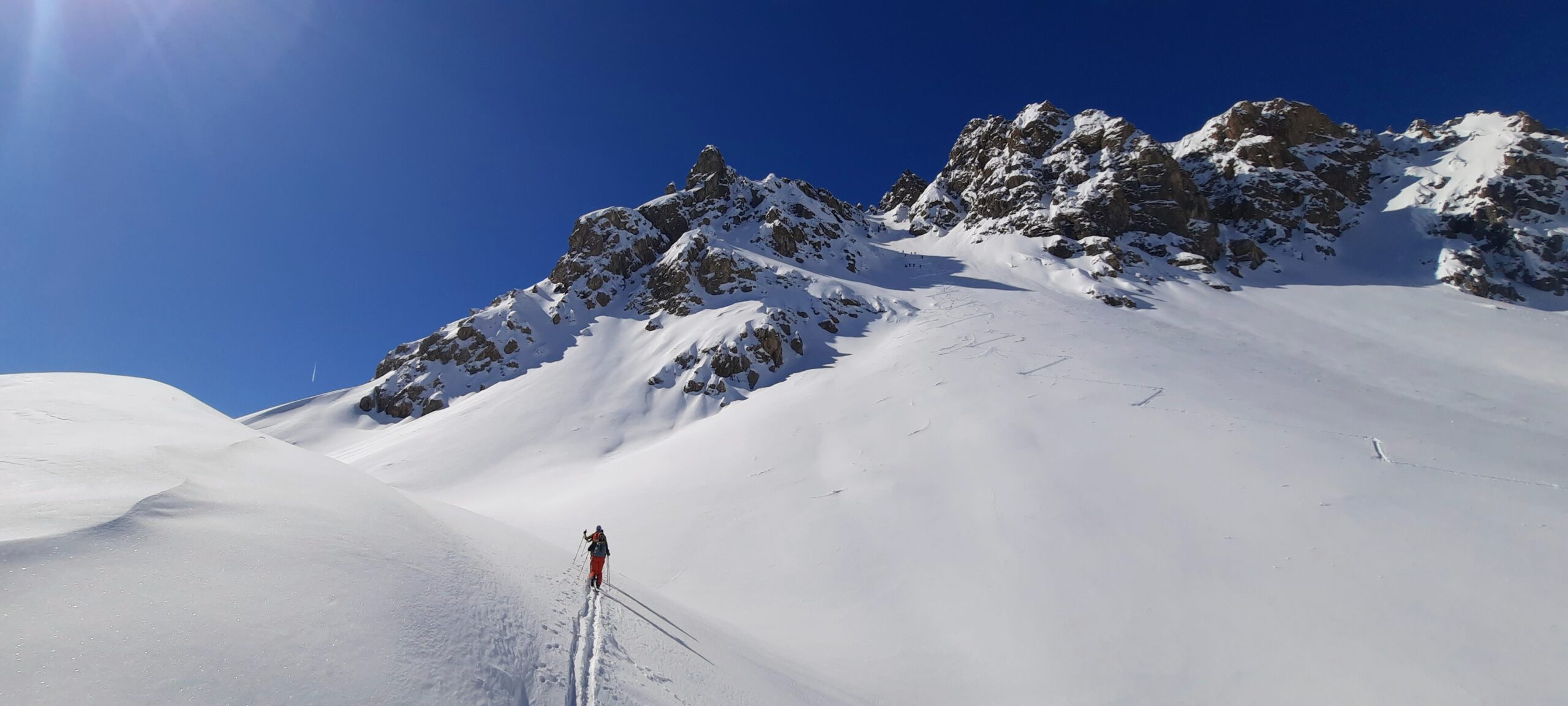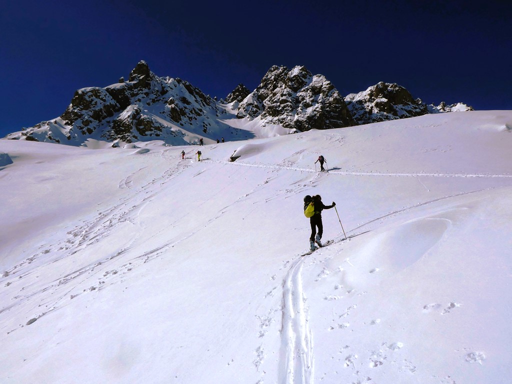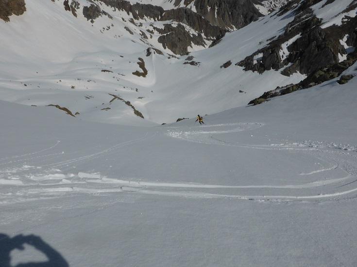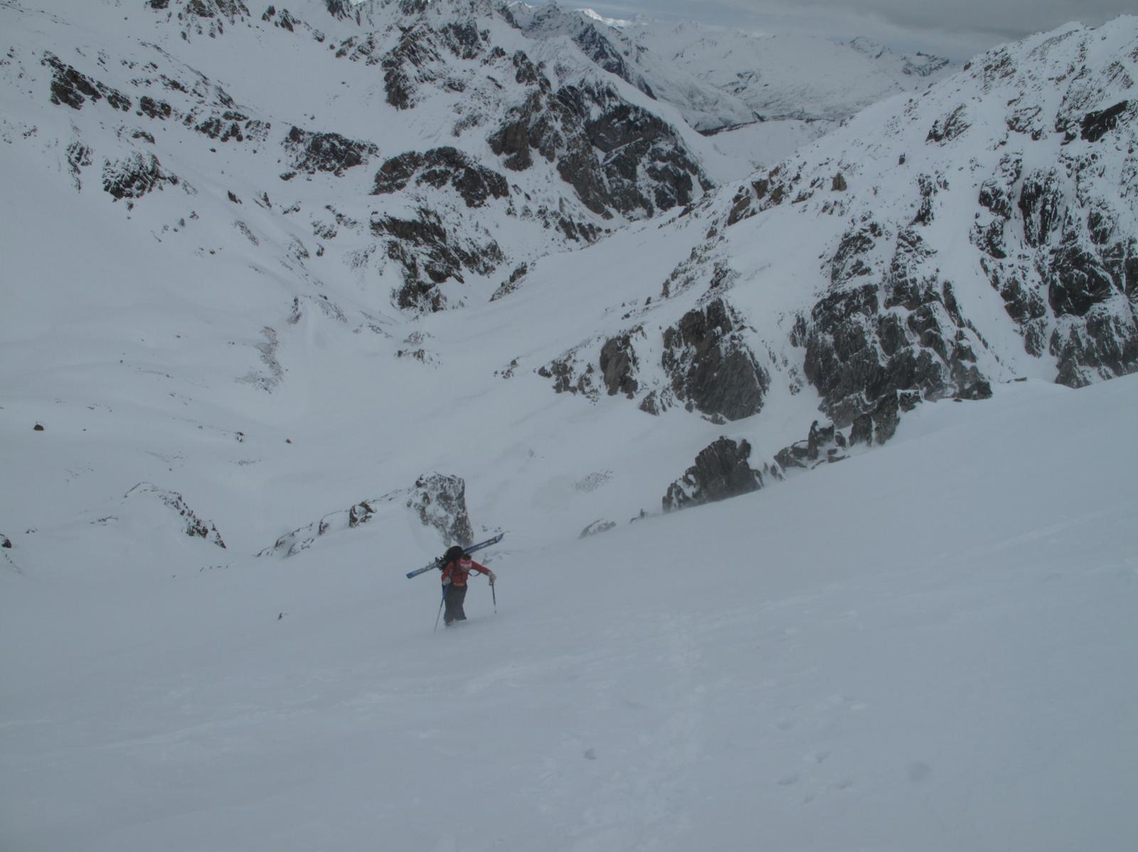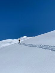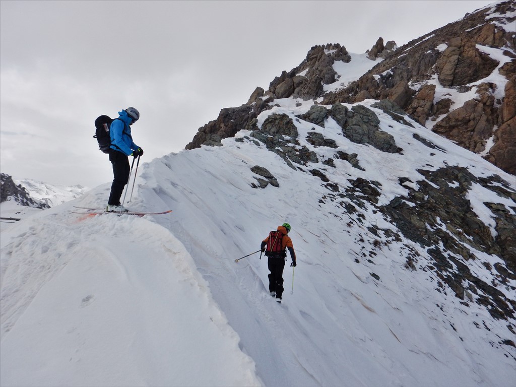 Ci si accede tramite un valloncello appartato su pendii sempre mediamente ripidi e ben esposti a nordest prima e a nord in alto. Dalla vetta posta fra i passi la Croce Or. e Occ.ottimo panorama sull'alta val Stura.