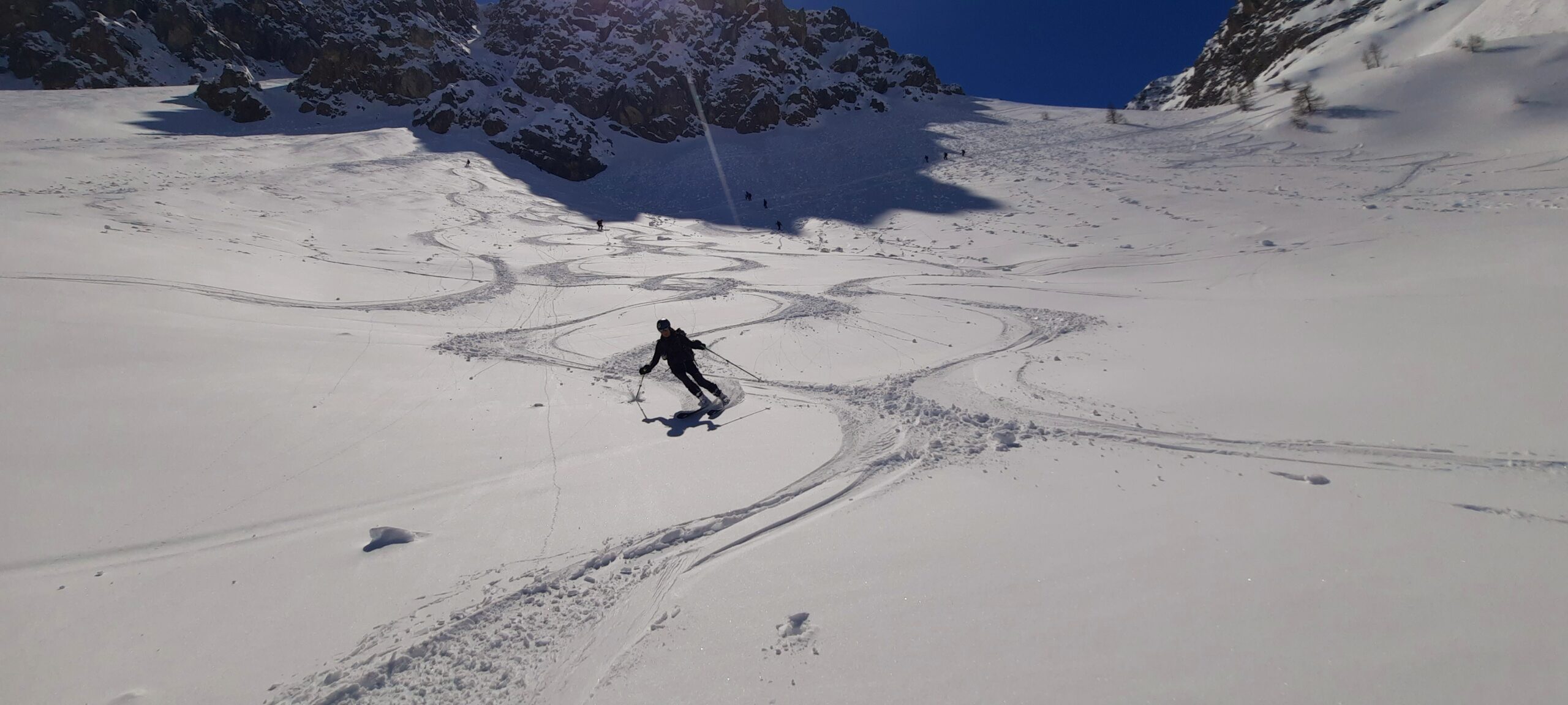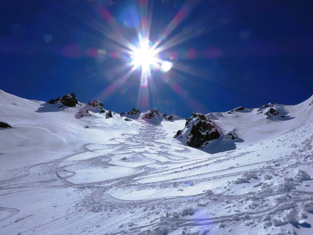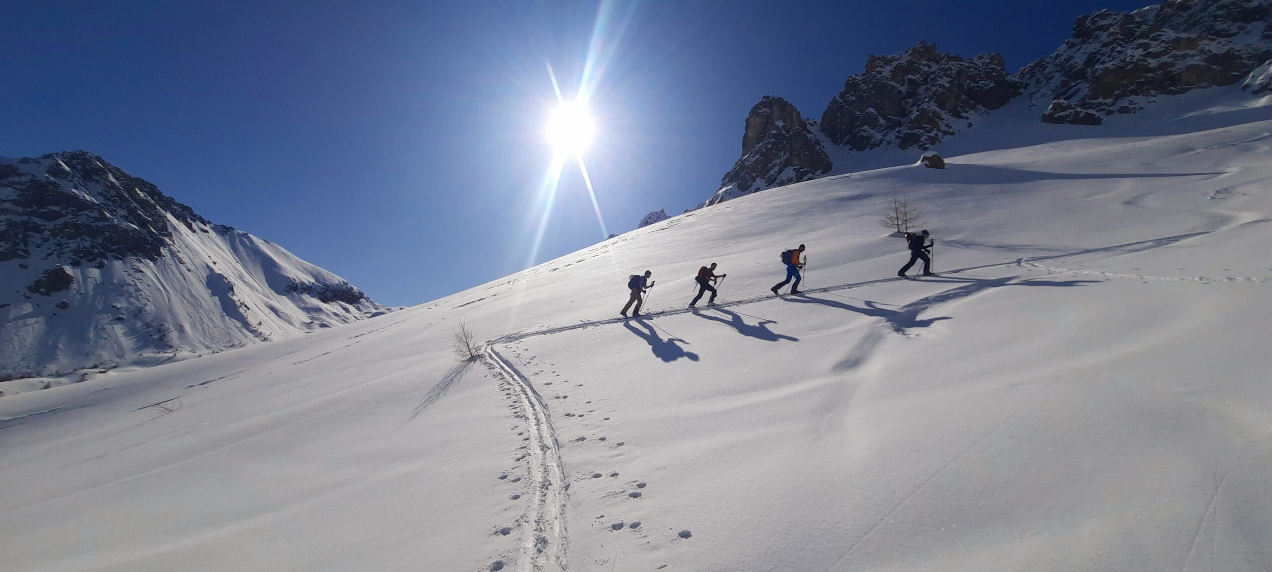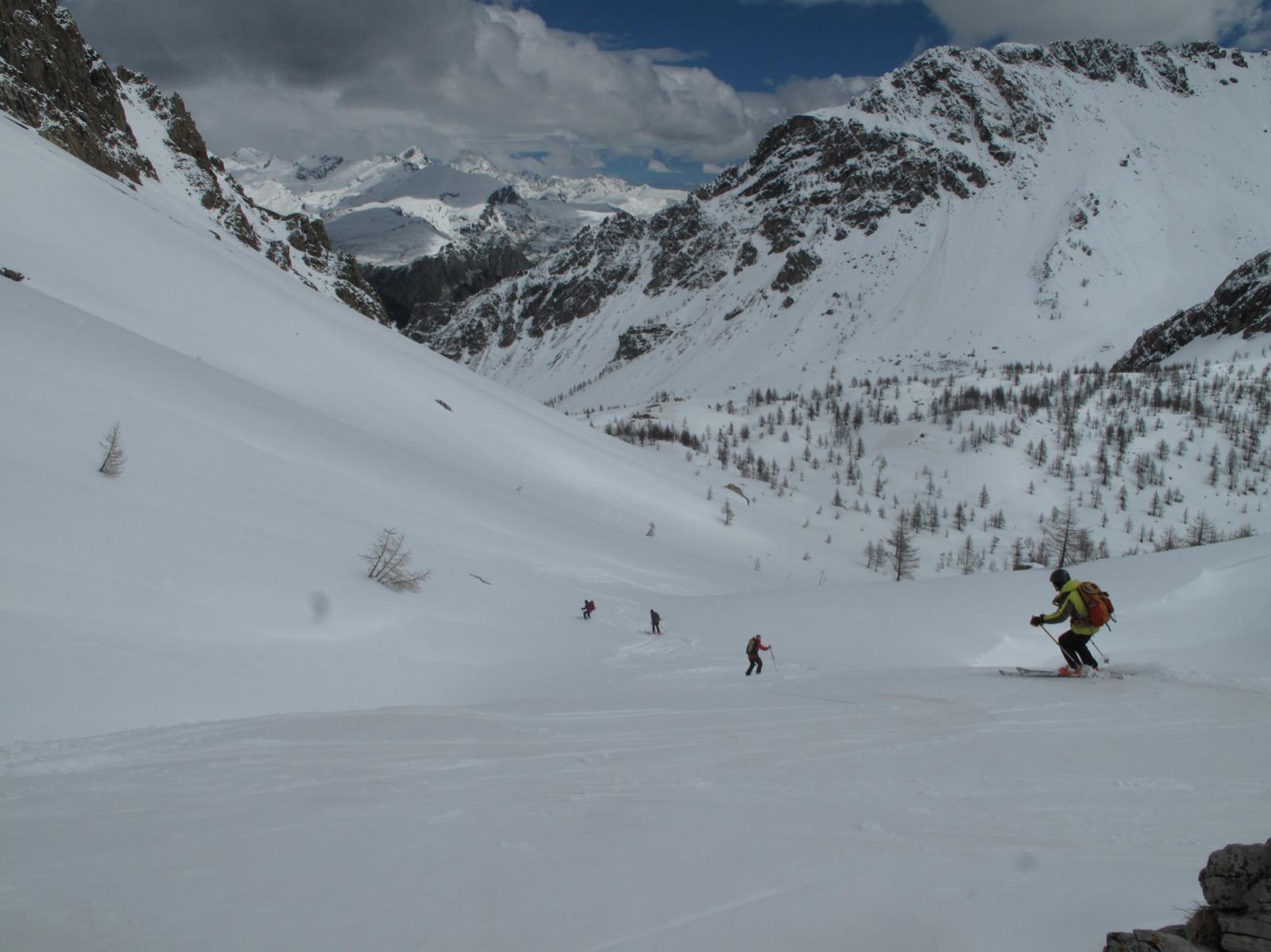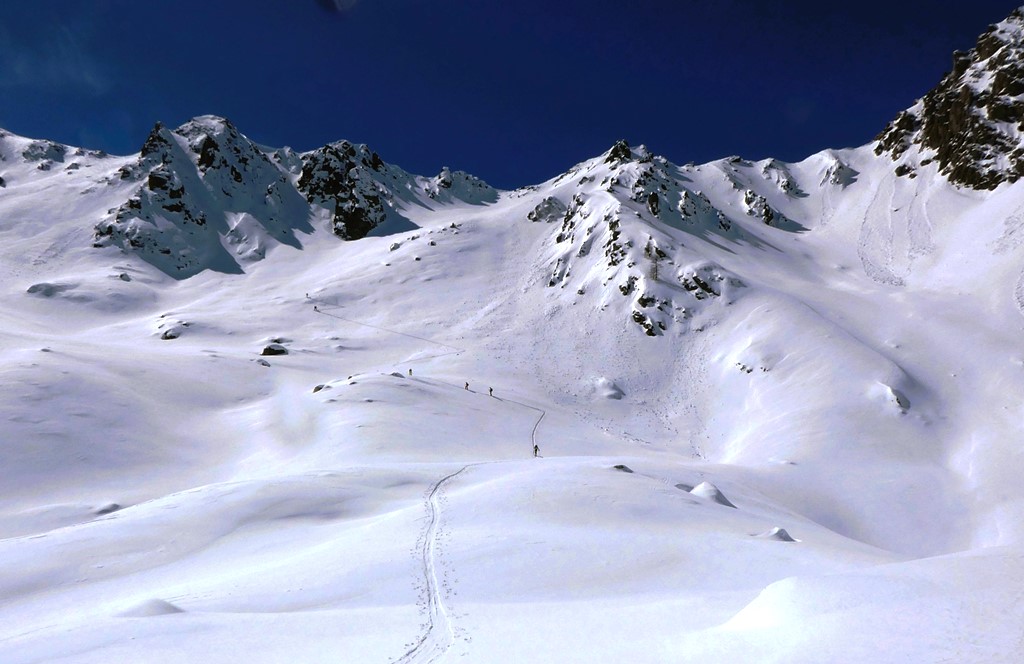 Ci si accede tramite un valloncello appartato su pendii sempre mediamente ripidi e ben esposti a nordest prima e a nord in alto. Dalla vetta posta fra i passi la Croce Or. e Occ.ottimo panorama sull'alta val Stura.