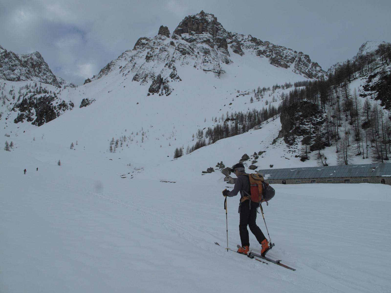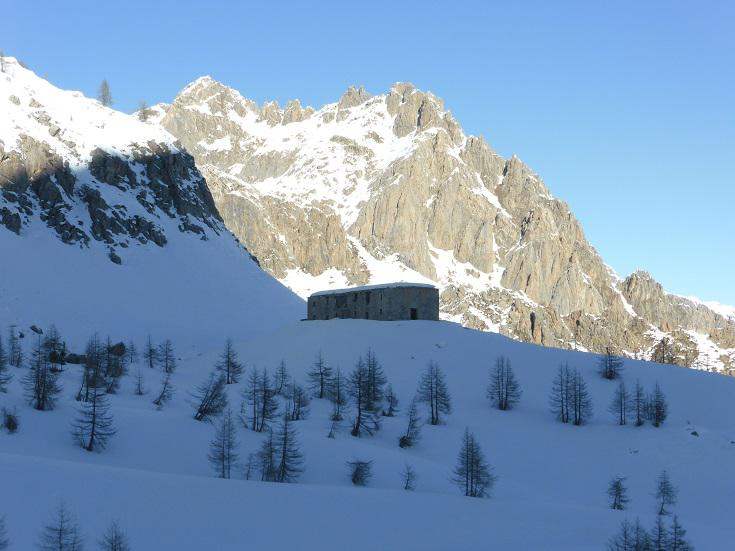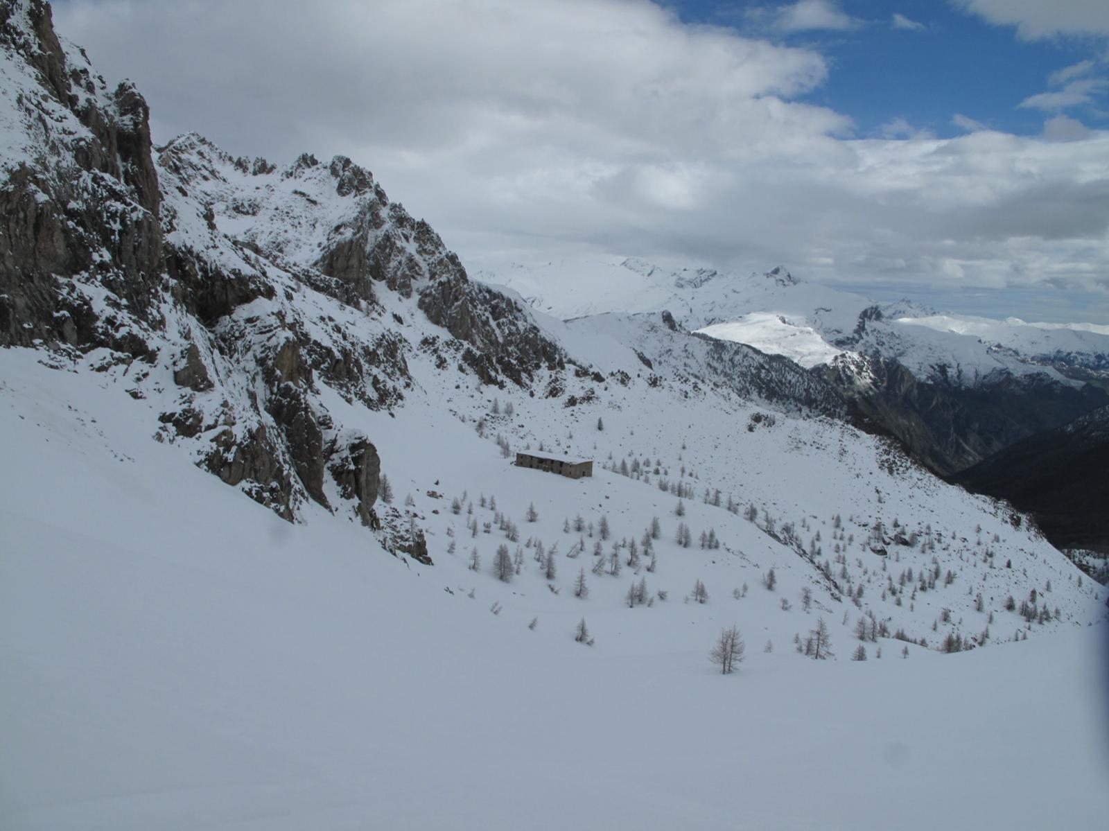 Da prato Ciorliero imboccare a dx dopo l’ultima baita ben ristrutturata,il vallone Costa Denti su pendii piuttosto ripidi,fino a raggiungere la caserma ottocentesca dell’Escalon(m.2271).