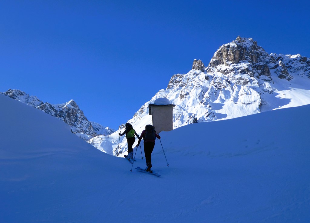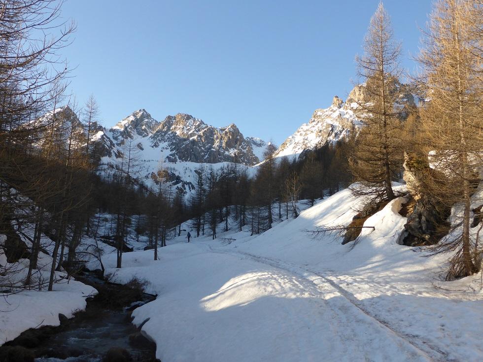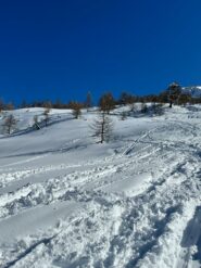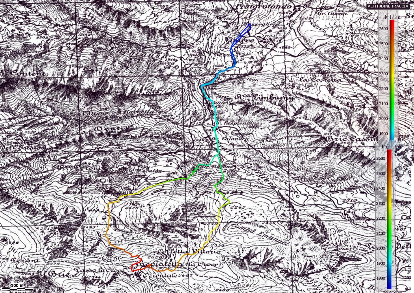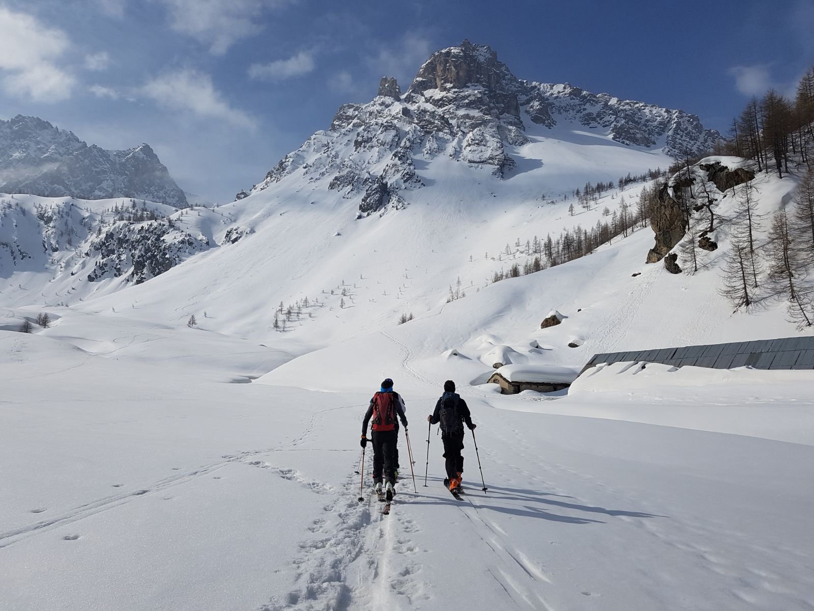 Da prato Ciorliero imboccare a dx dopo l’ultima baita ben ristrutturata,il vallone Costa Denti su pendii piuttosto ripidi,fino a raggiungere la caserma ottocentesca dell’Escalon(m.2271).