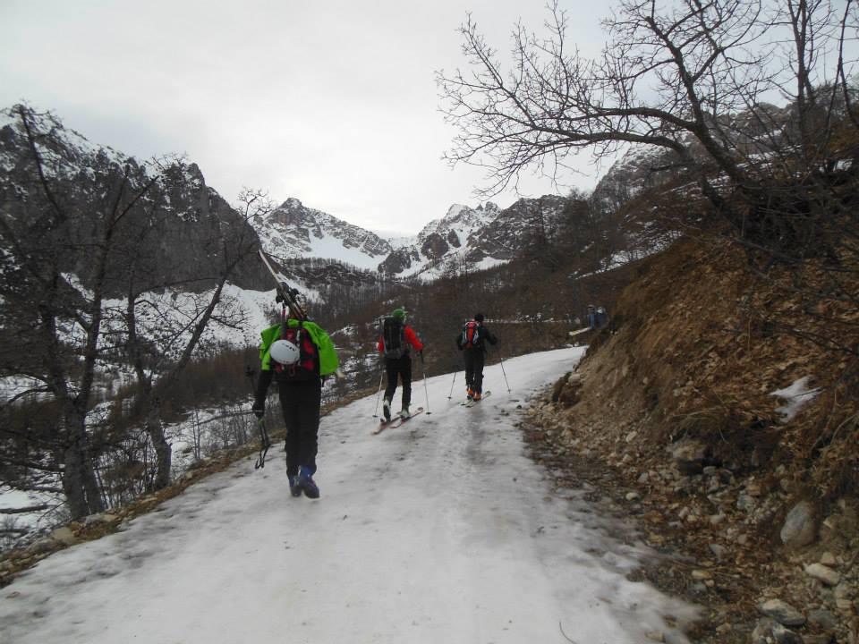 Purtroppo la relazione inserita non è ben chiara…Noi abbiamo seguito lo stradello fino a Prato Ciorliero (Ruderi). Poi, proseguendo sulla traccia, ci siamo addentrati nel Vallone Costa Denti per un po’, infine, lasciandolo sulla destra (al bivio siamo andati a sx), abbiamo girato intorno al Cobre (lato ovest). A questo punto, sbagliando, abbiamo seguito la valletta fino al Colletto Vittorio. Non conoscendo come fosse la cresta per arrivare in vetta alla Repiatetta (abbiamo saputo che è possibile salirla… sentiero estivo), siamo ridiscesi dalla stessa valletta, lato sx orografico, in traverso sotto le rocce (la neve di oggi lo permetteva…dura e trasformata), fino a reperire il primo canale a sx salibile fino alla vetta: molto ripido, circa 300m sui 40°, rampant indispensabili. Raggiunta la cresta, facilmente, sci ai piedi, in vetta (la più alta sulla dx). Discesa lungo il canale di salita su ottima neve trasformata fino a circa metà dello stesso. Poi abbiamo attraversato a sx per raggiungere un secondo canale, sempre con ottima neve. Attenzione, verso la fine della gita abbiamo seguito delle tracce a dx che portavano verso Prato Ciorliero, trovando ancora ripidi pendii sciabili, ma su neve meno buona. Parte finale con neve assai bagnata prima dei ruderi. Stradello alla fine senza più ghiaccio. (Disl. complessivo circa 1270m, OSA)