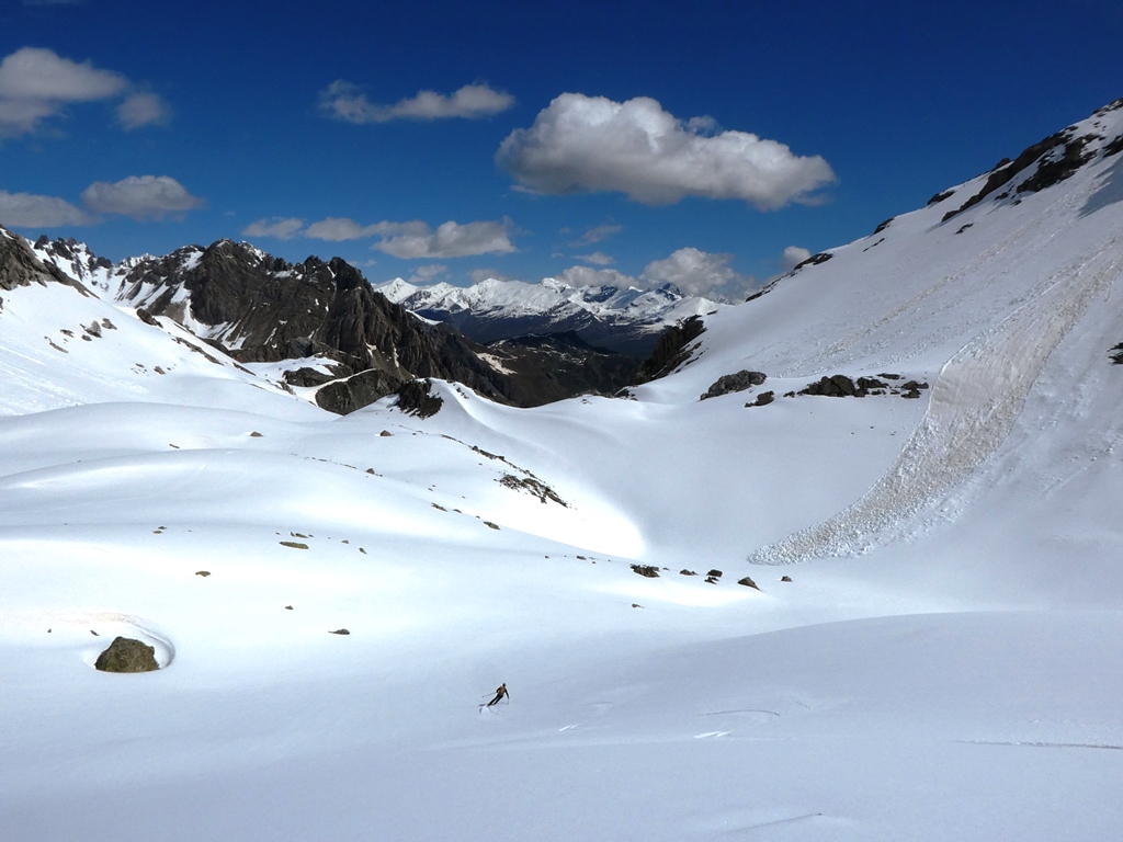 Con Mattia, ambiente sempre grandioso in questo angolo della Valle Maira. Per la cronaca, canale Nord del Cobre completamente svalangato.