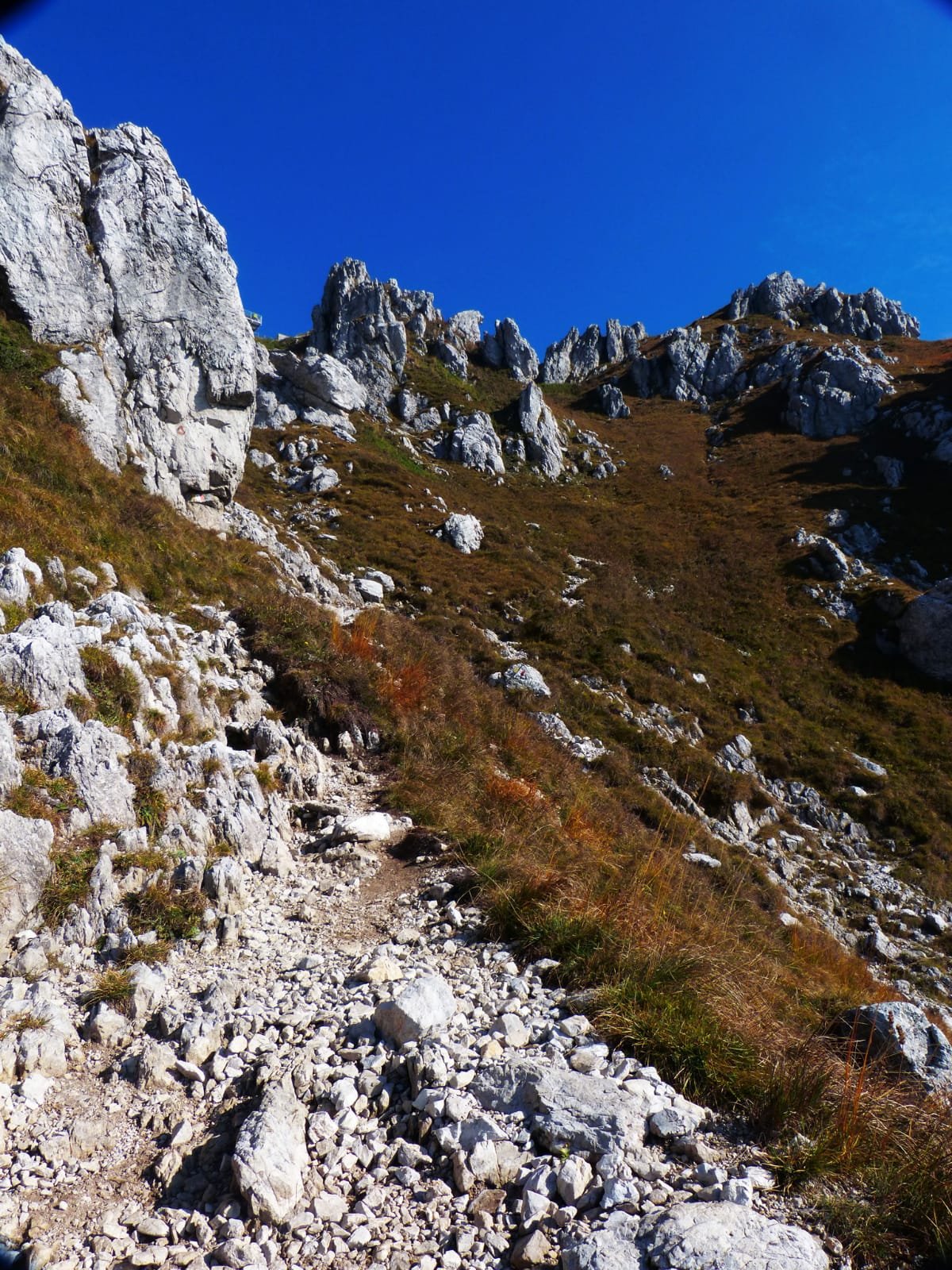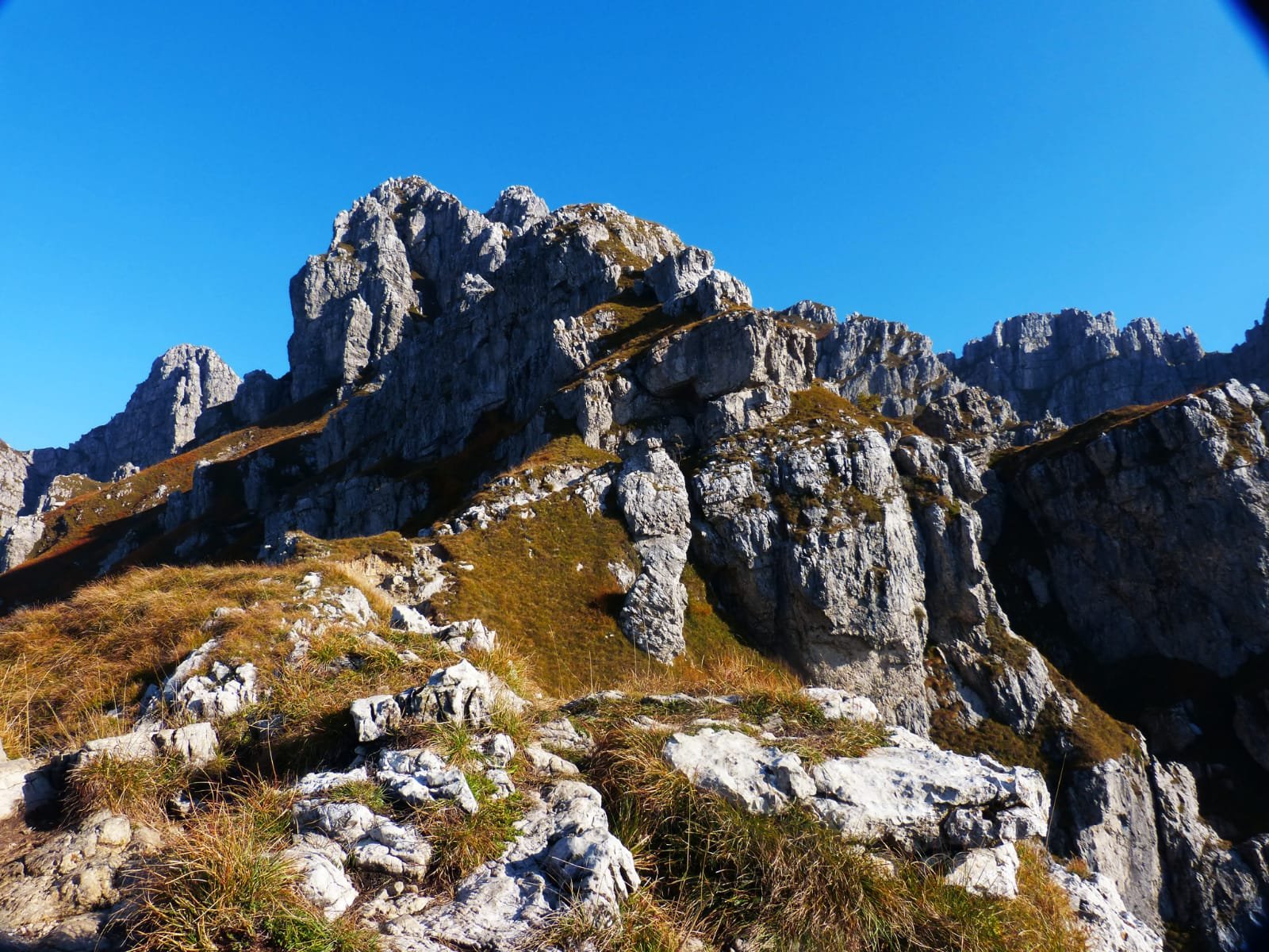 Per la discesa si può scegliere tra il sentiero n. 1 (già utilizzato) oppure il n.10 che riporta ai Piani d’Erna percorrendo il canalone Bobbio (attrezzato con catena in alcuni tratti).