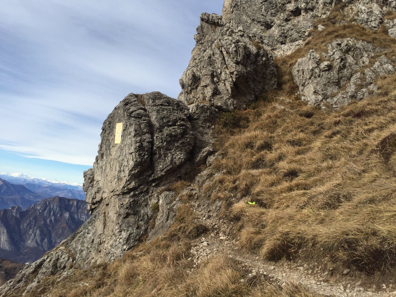 Un’alternativa d’attacco è quella di raggiungere prima il Passo del Fò (1284 mt, 0,30 h dai Piani d’Erna o 1,30h dalla stazione della funivia) e scalare la bastionata rocciosa che sostiene il Pian Serrada per il sentiero attrezzato del “Buco della Carlotta” o per la ferrata del Centenario.