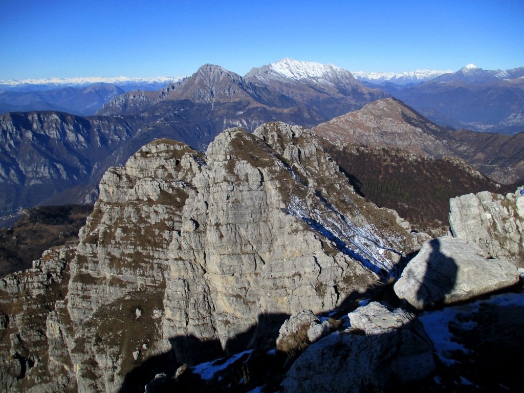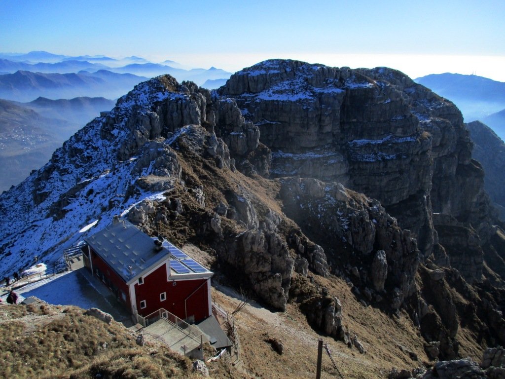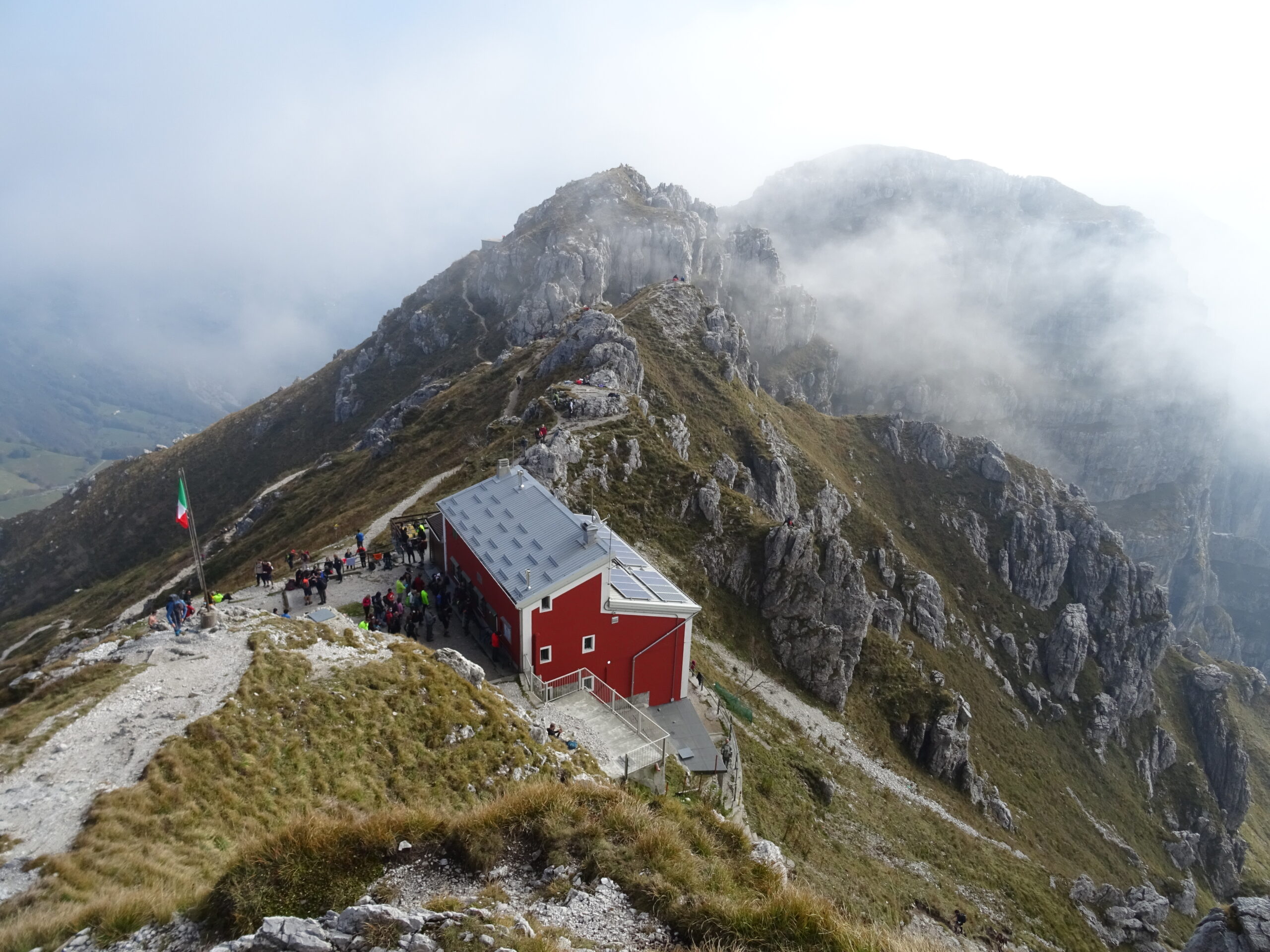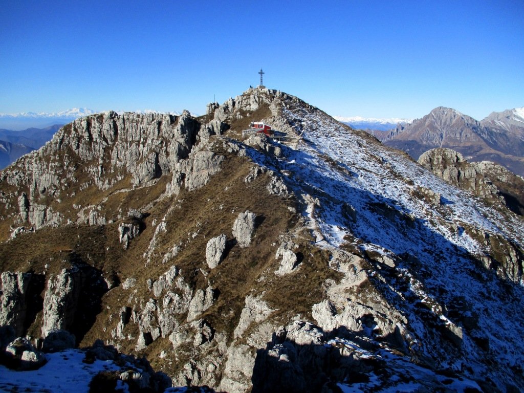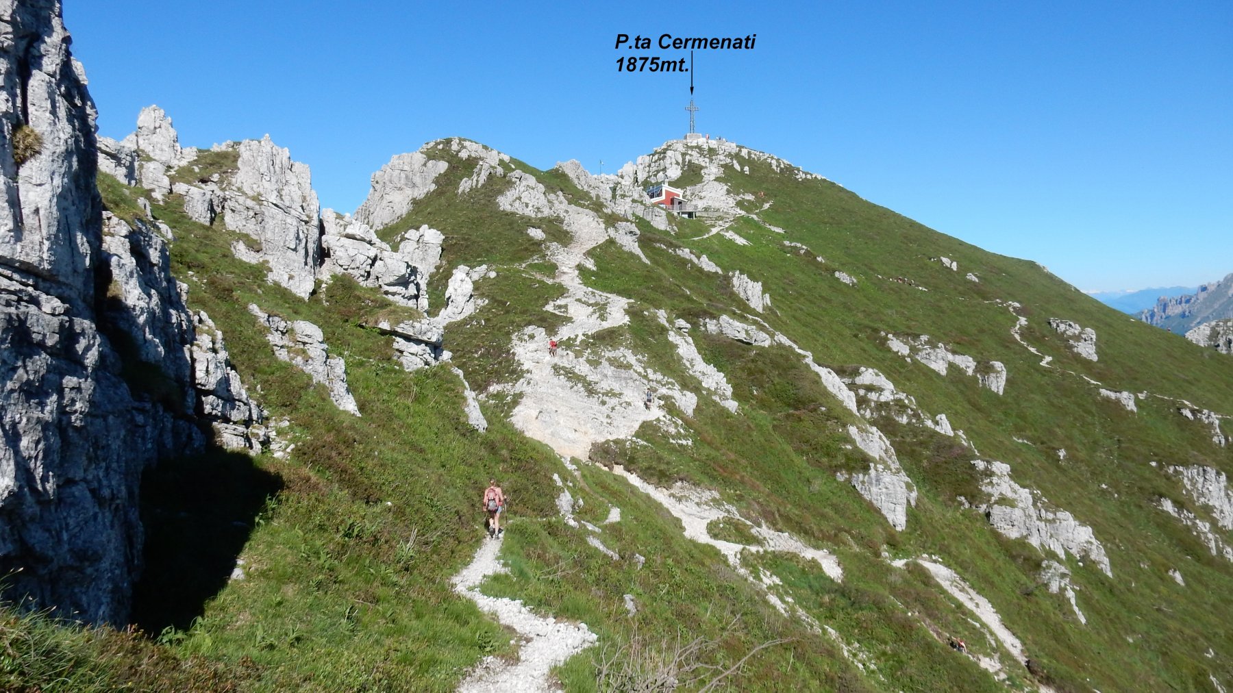 Da quest’ultima si intercetta il sentiero che sale dalla normale di Brumano ed in breve si raggiunte il Rif Azzoni e la soprastante Punta Cermenati 1875 m, la vetta principale del gruppo del Resegone, con enorme croce di vetta.