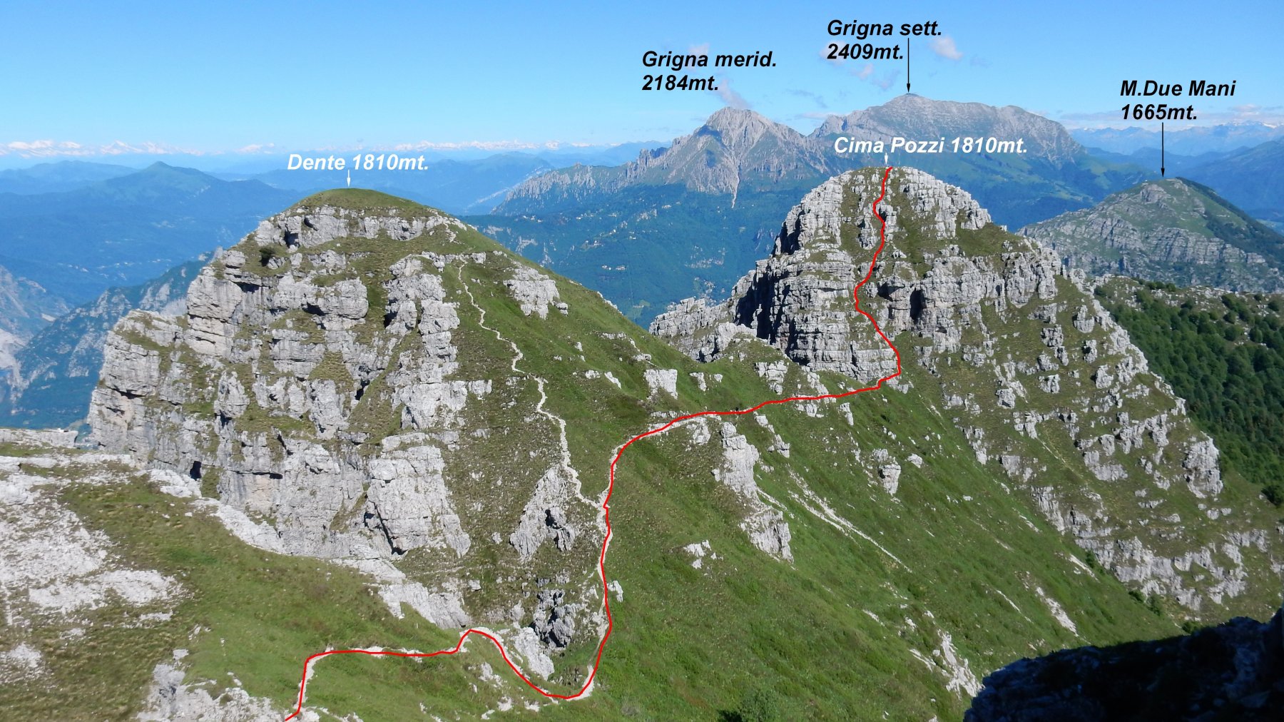 Scendendo da quest’ultima, si arriva all’imbocco del del canalone Bobbio, per poi risalire la ripida cresta della Cima Pozzi 1810m.