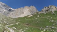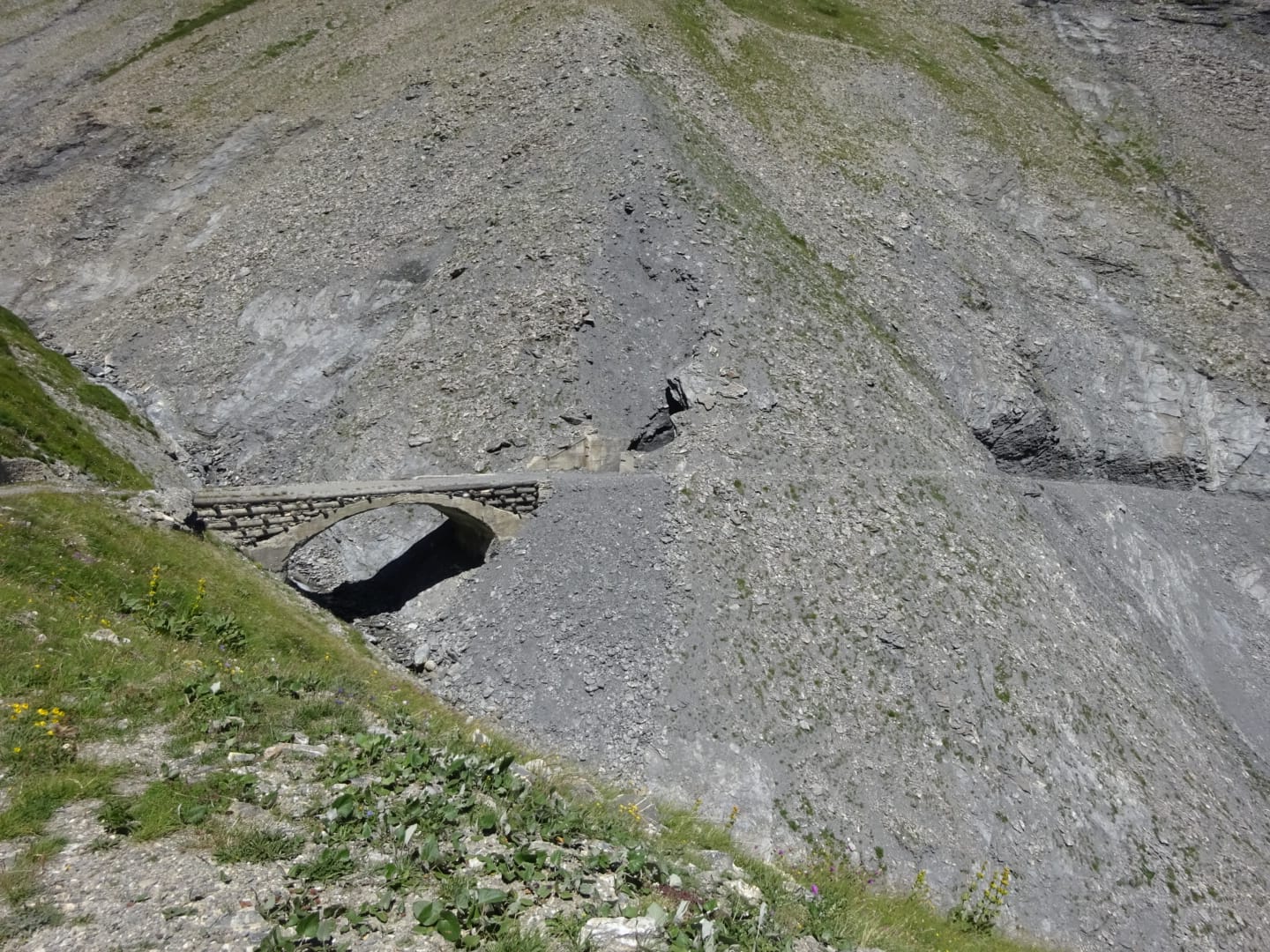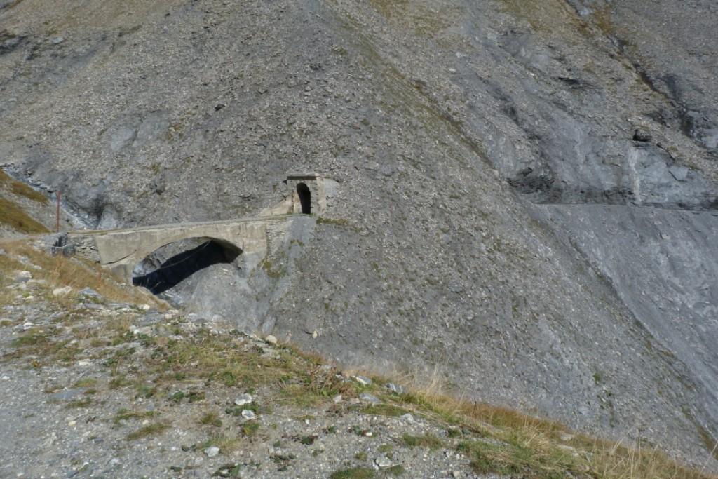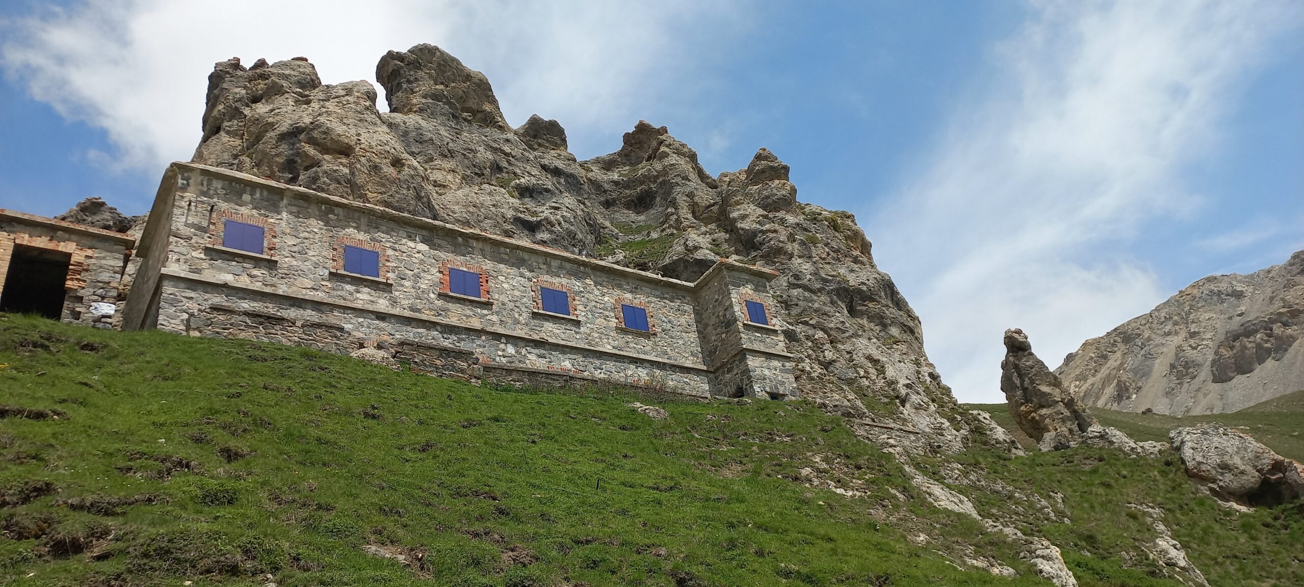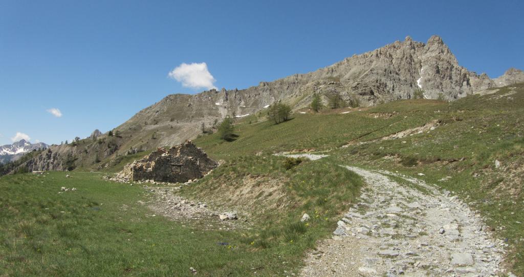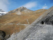 Si prende quota con un paio di tornanti e si intraprende il lungo traverso che, dopo essere usciti fuori della vegetazione conduce al tunnel a circa 2200 m quota. Quindi si passa sotto la caserma del Pian dei Morti (possibile digressione) nel punto in cui si incontra il sentiero che si prenderà in discesa.