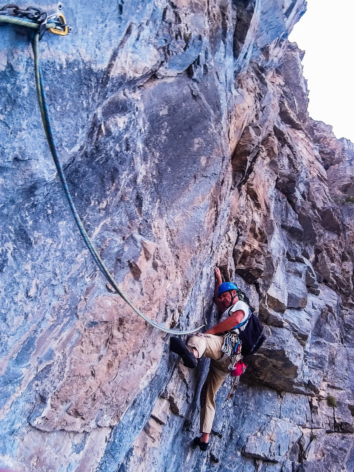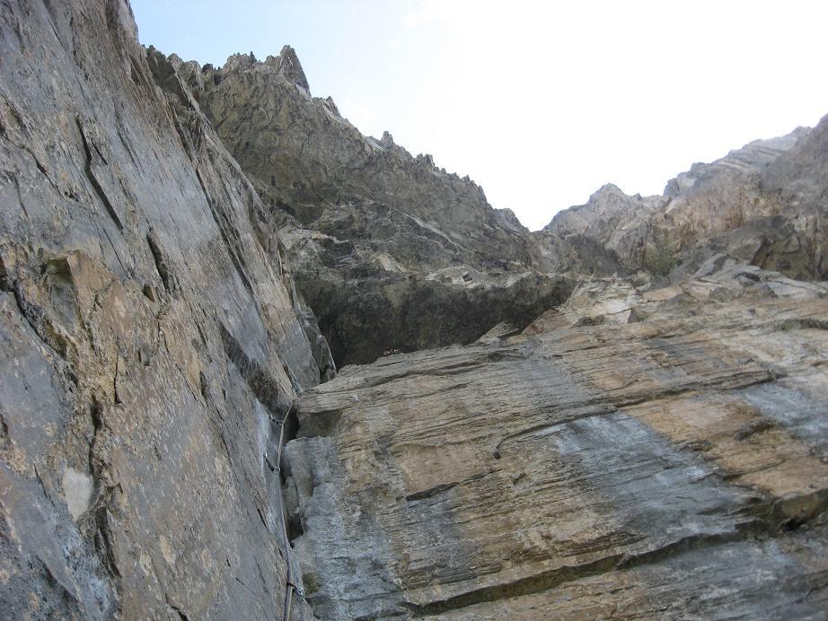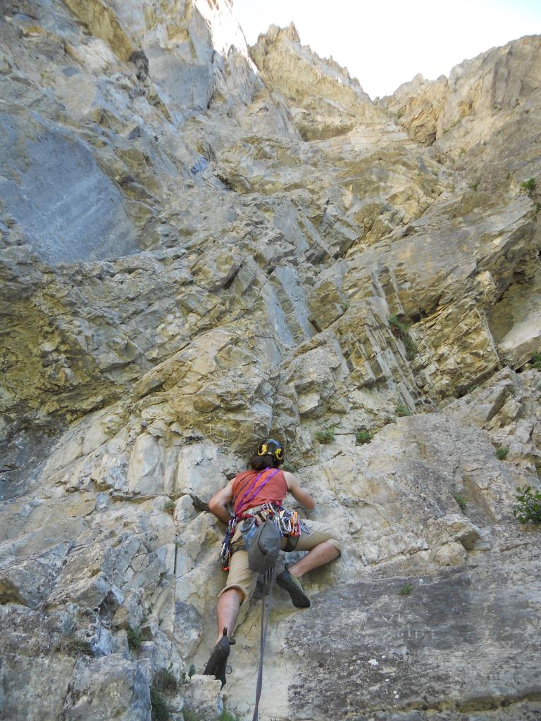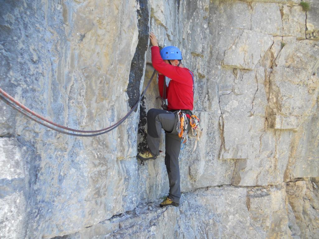 Questa via in particolare, riattrezzata in chiave moderna, propone una scalata sostenuta sul 6a e oltre di grande bellezza. Soltanto due passaggi (il traverso e il tiro che segue) sono su roccia un po' friabile, ma sono abbastanza corti da non rovinare la scalata.