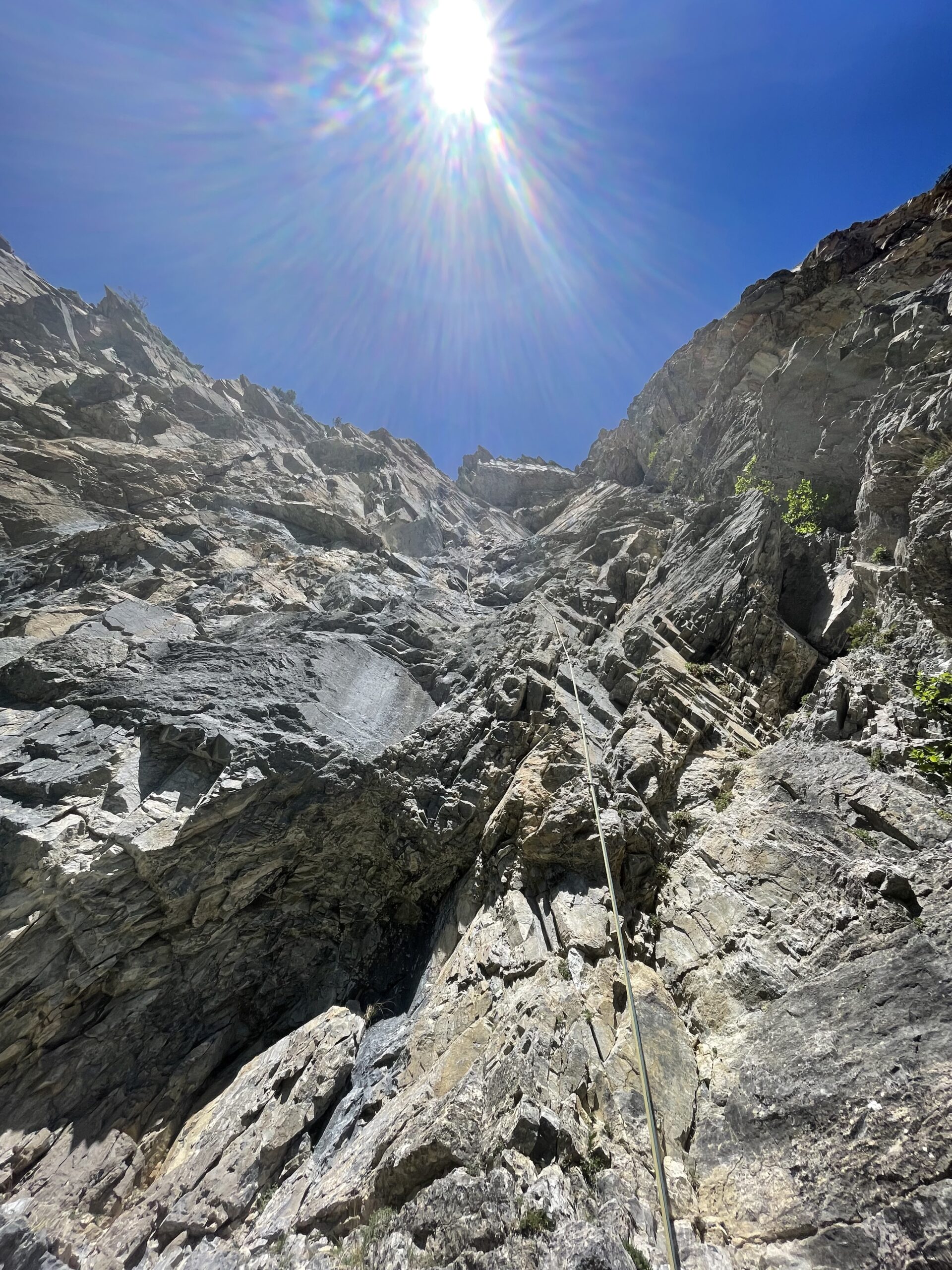 Via salita dopo aver ripetuto la vicina B&B x M che, personalmente, consiglio essendo un pelo più difficile (primo movimento L1 e passo di 6C in L4) ma molto più bella rispetto alla via delle guide.