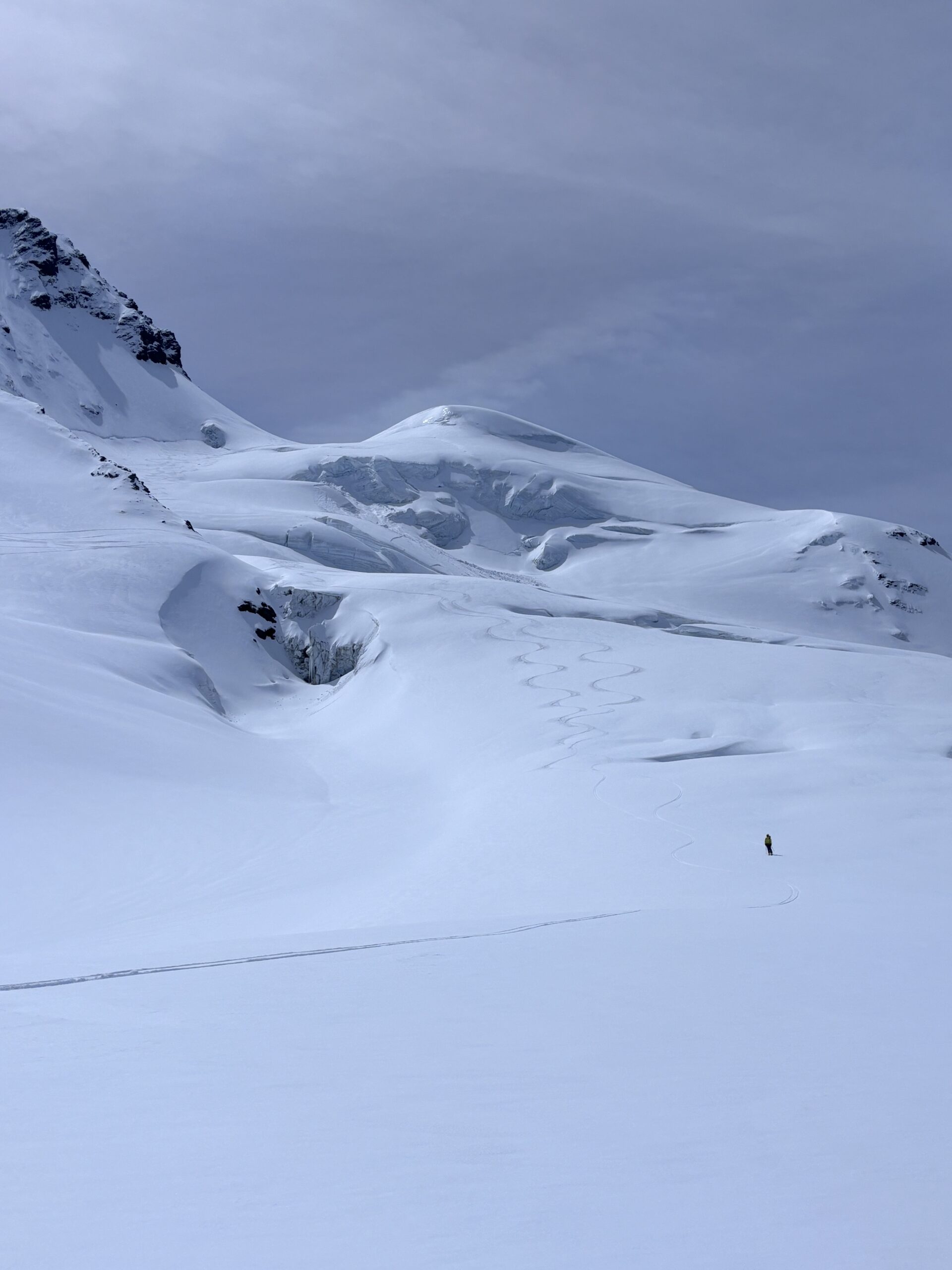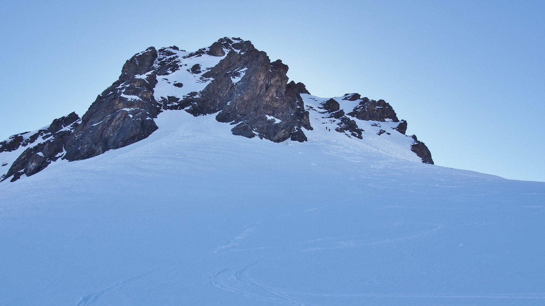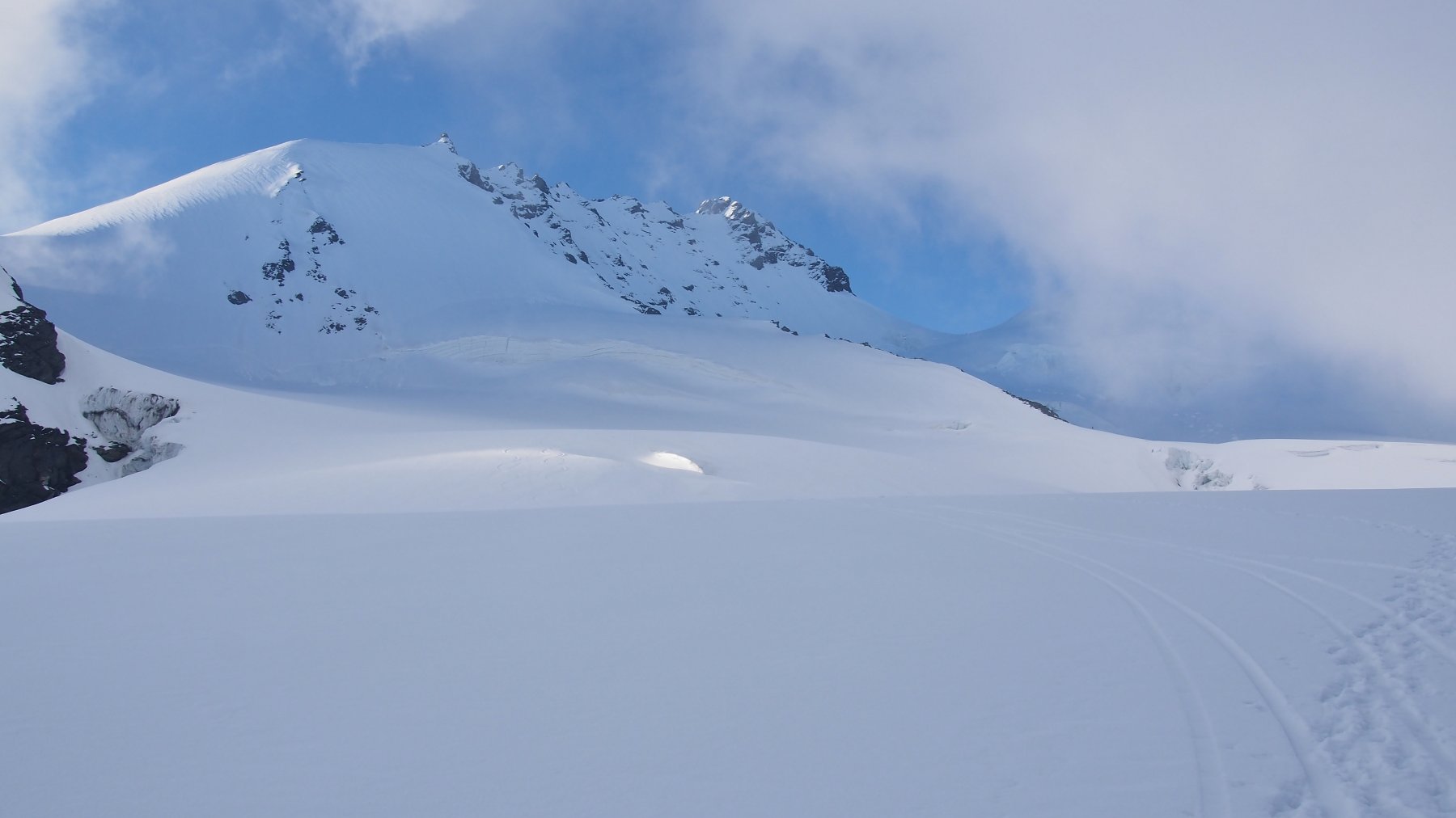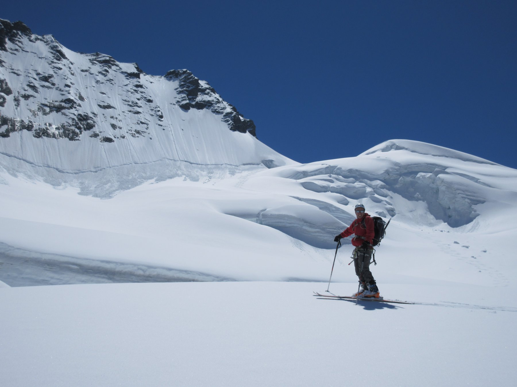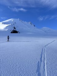 Discesa: scendere sull’itinerario di salita fino al passaggio quotato 3662, poi puntare alla cresta rocciosa quotata 3311, passando circa al centro di una zona piuttosto crepacciata.