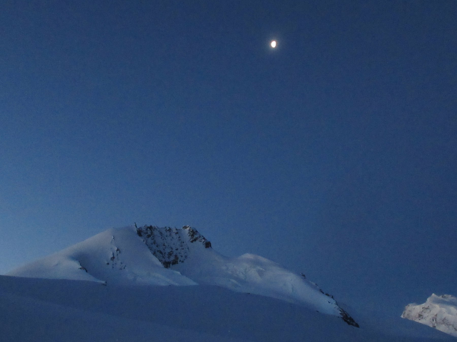 Gita a due facce, dai 3000mt in su condizioni ottimali, il meglio che ogni scialpinista vorrebbe trovare per gite di questo genere a fine stagione, neve perfetta, temperatura perfetta, nessuno in giro,…sotto i 3000mt zero neve sudore e fatica…