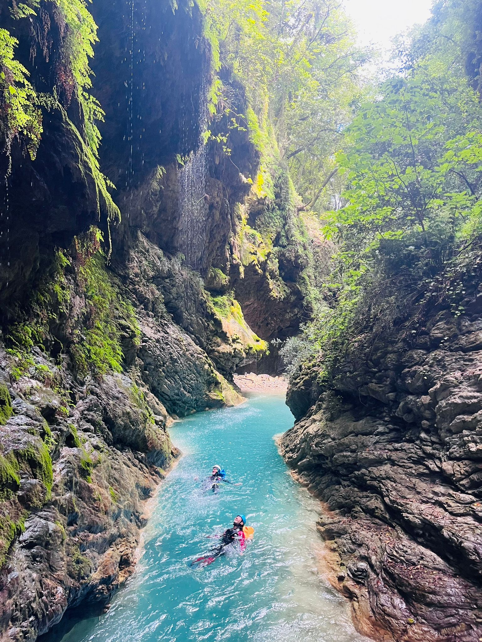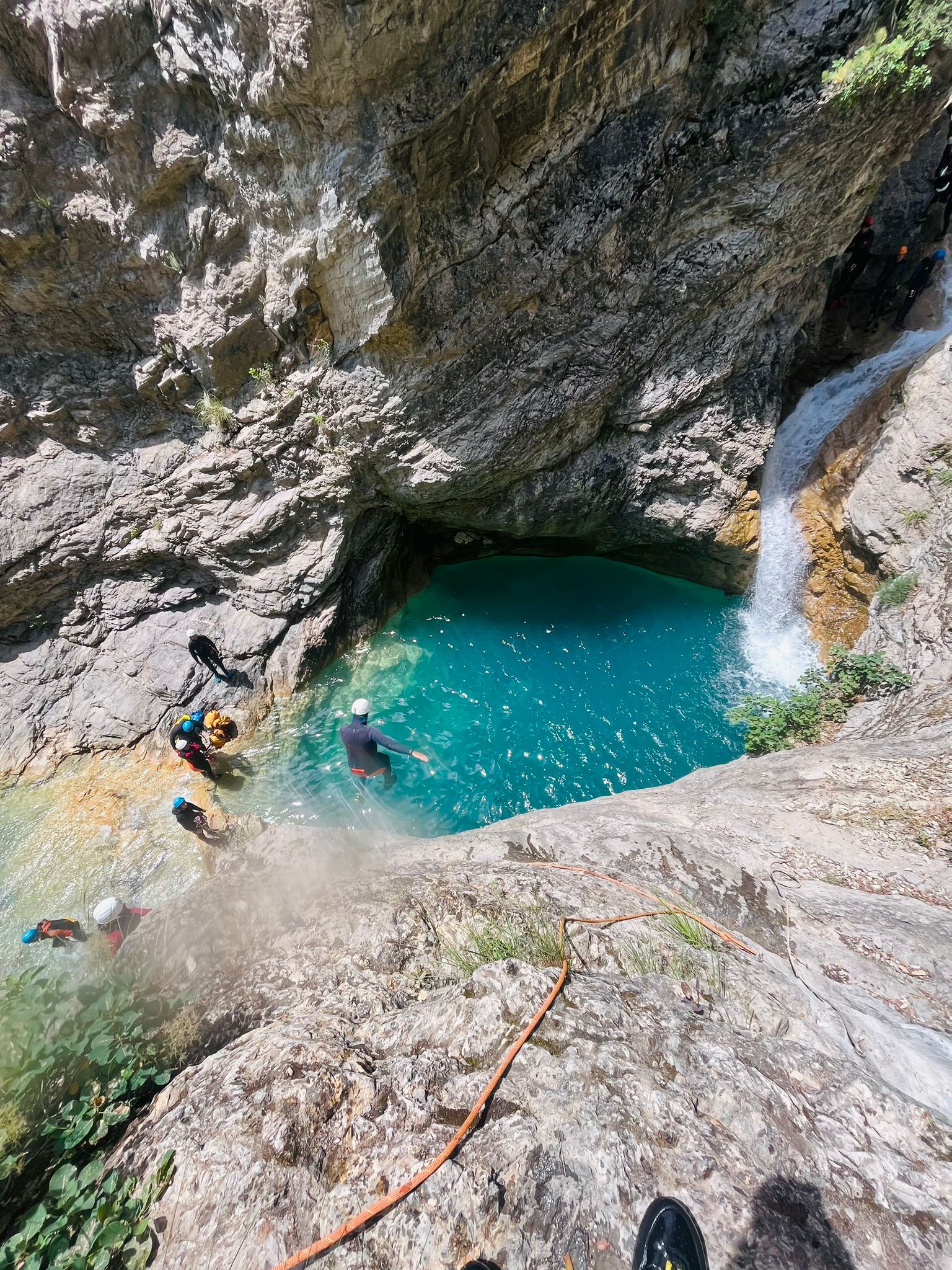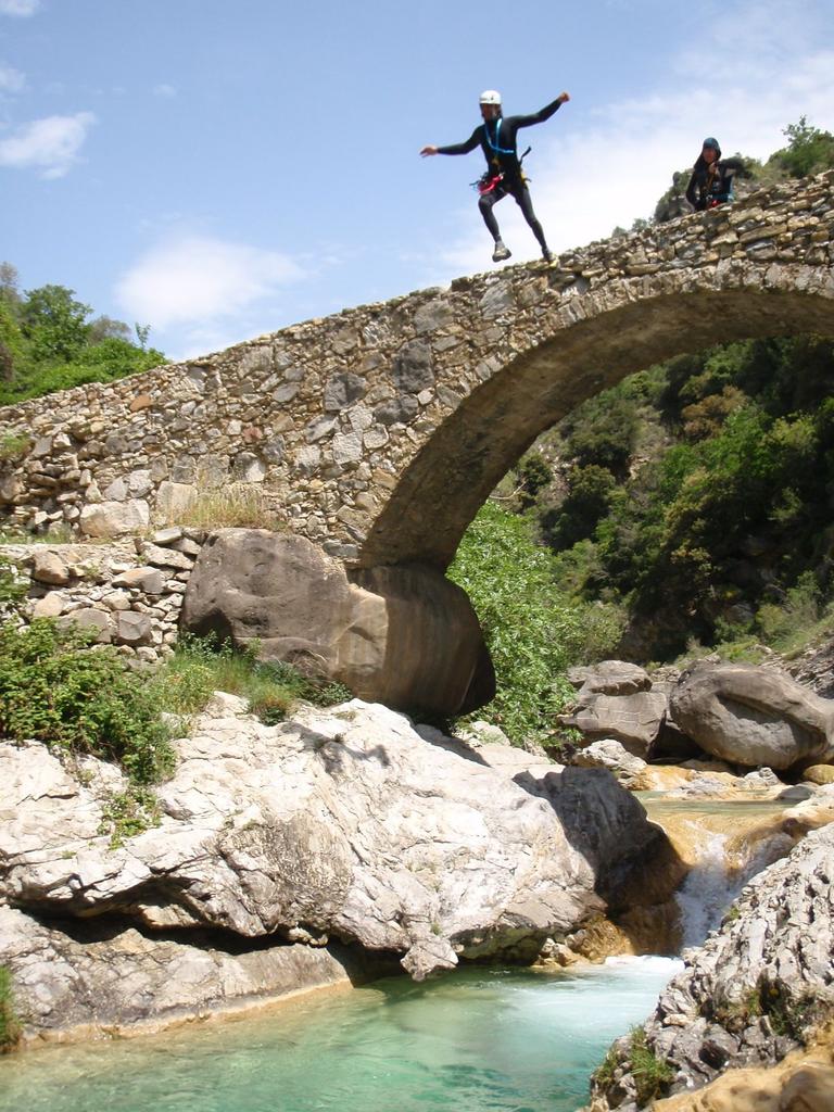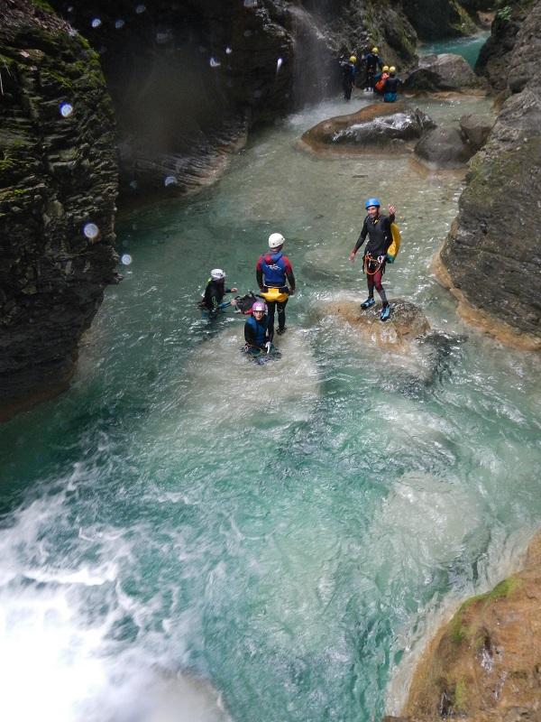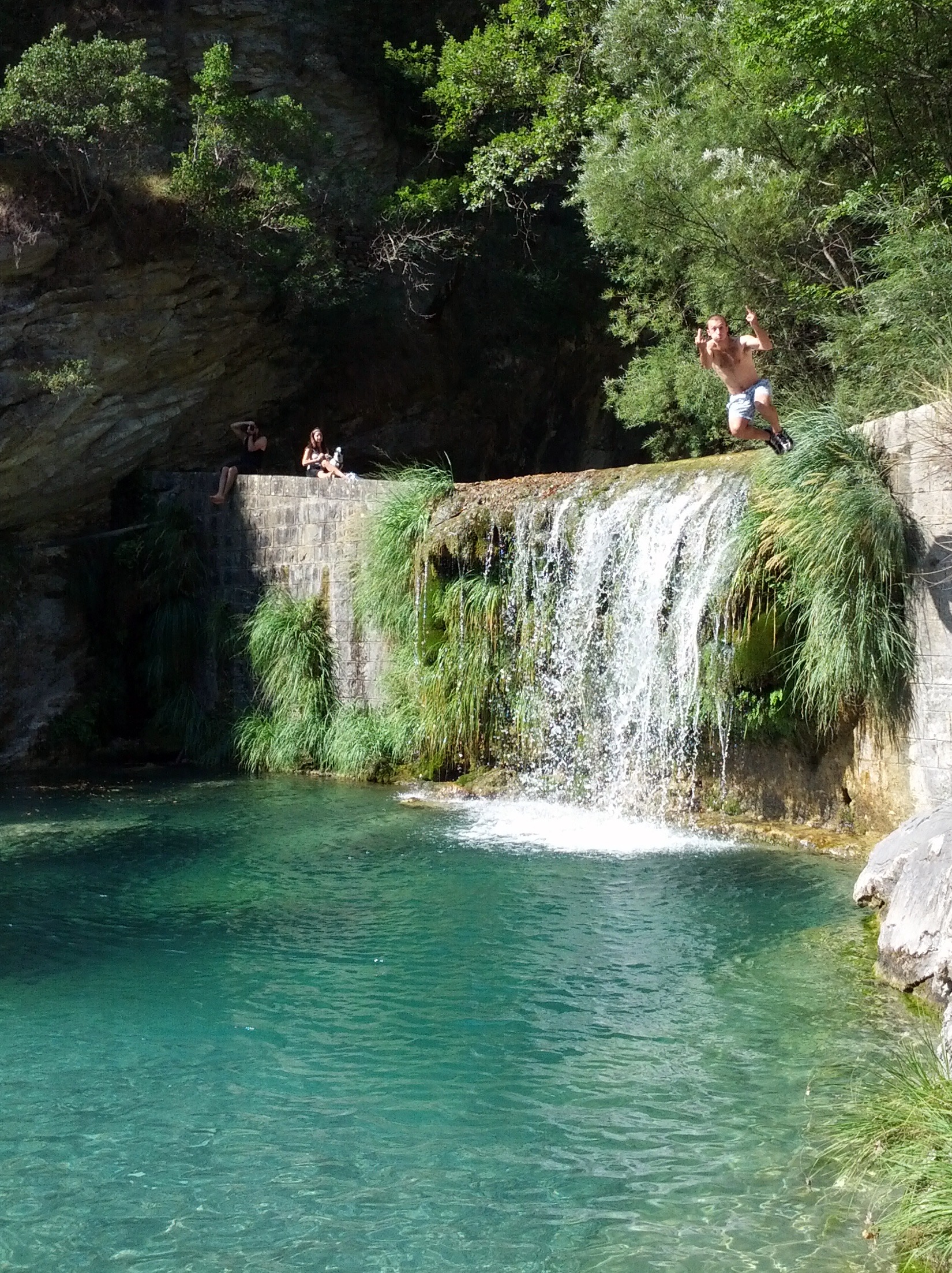 L’intinerario si svolge con una serie di calate e tuffi molto belli in acqua sempre verde. Si arriva in fine dopo 15 min di marcia sul greto ad un ultimo salto presso uno sbarramento artificiale.