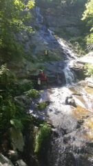 Si passa su destra orografica cercando la via migliore si arriva ad placca scivolosa da 5 m.(chiodo con corda fissa).