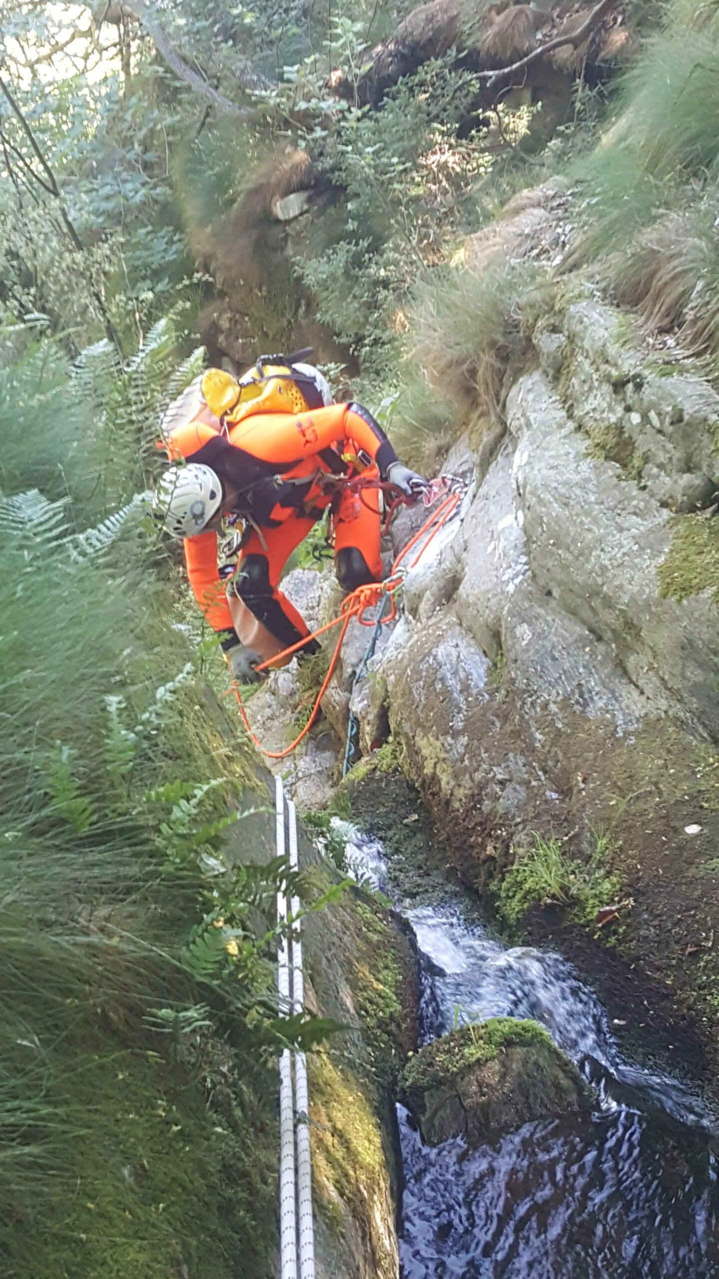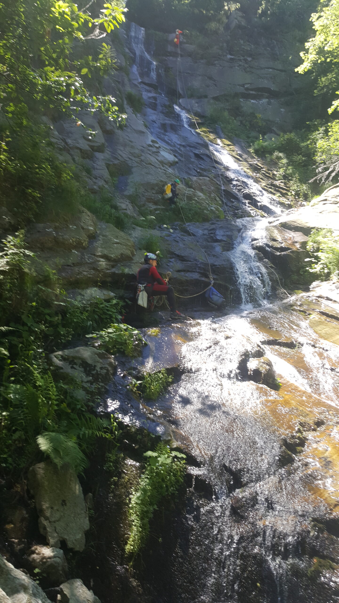 Si entra nel rio poco a monte della prima calata C15 che inizia con mancorrente da 12.Segue C20 con mancorrente da 10 .