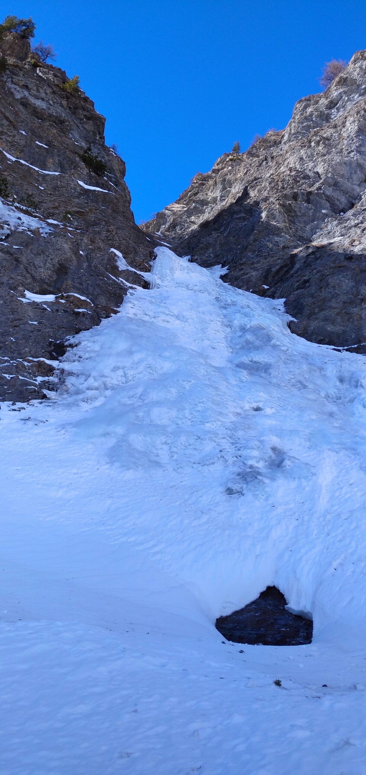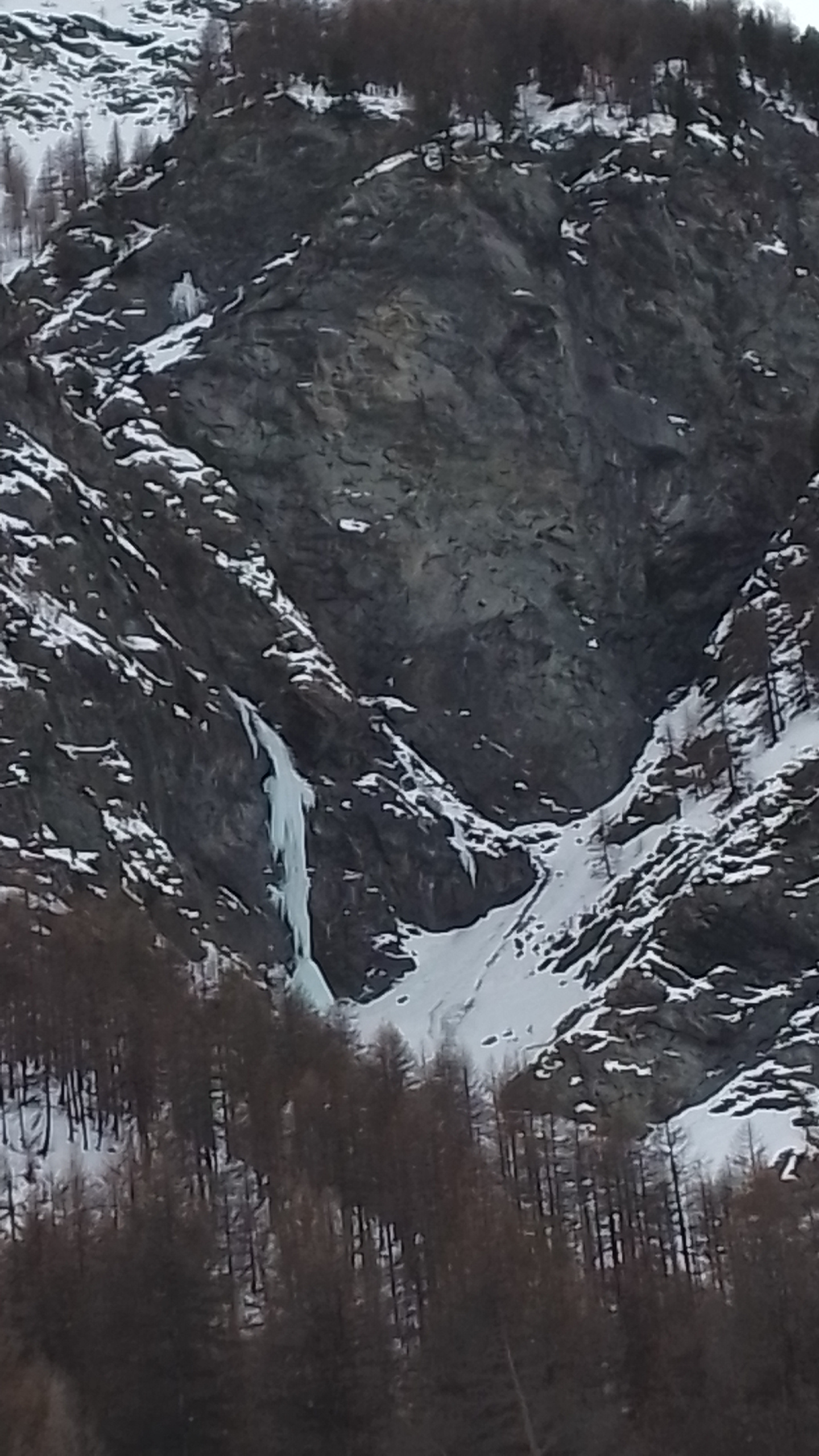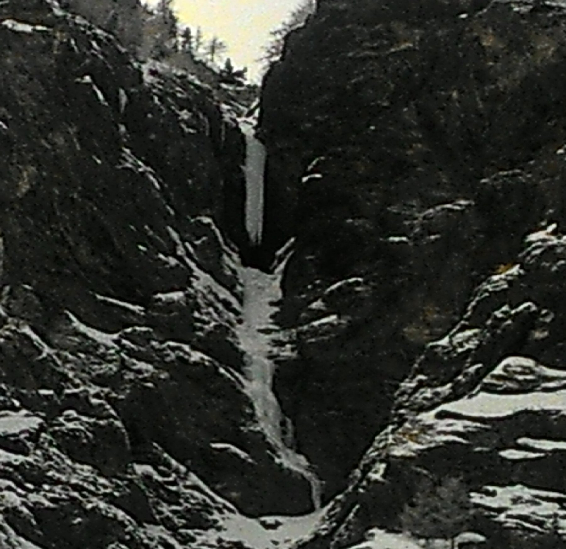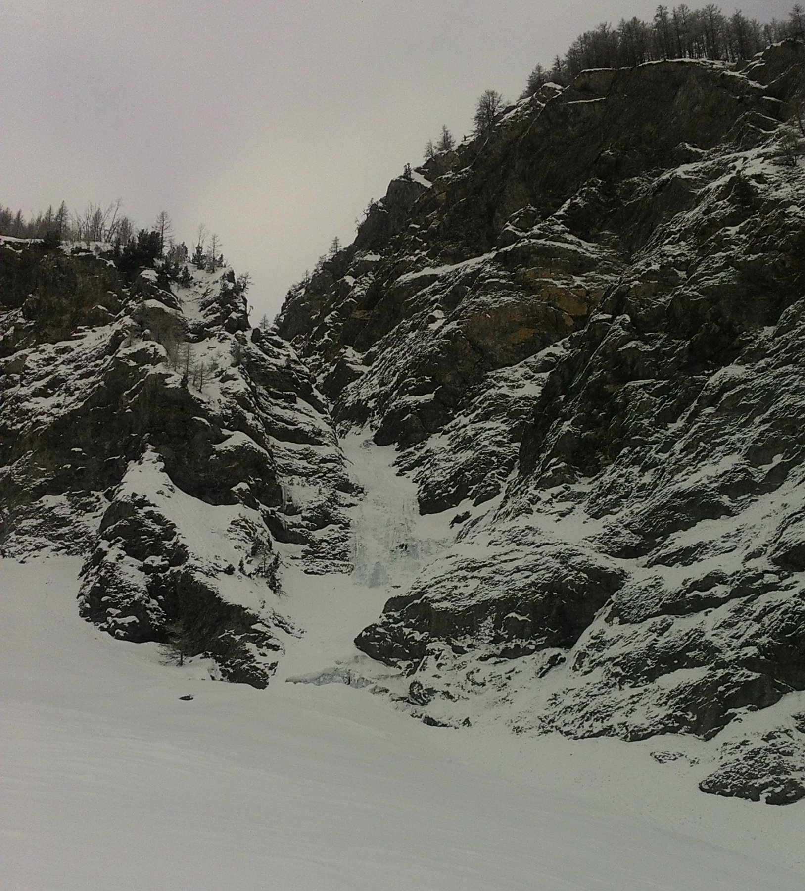 Il primo salto è più breve e si può salire sulla dx (più ripido, 80°) e più facilmente sulla sx. In caso di abbondante innevamento è molto corto e coperto.