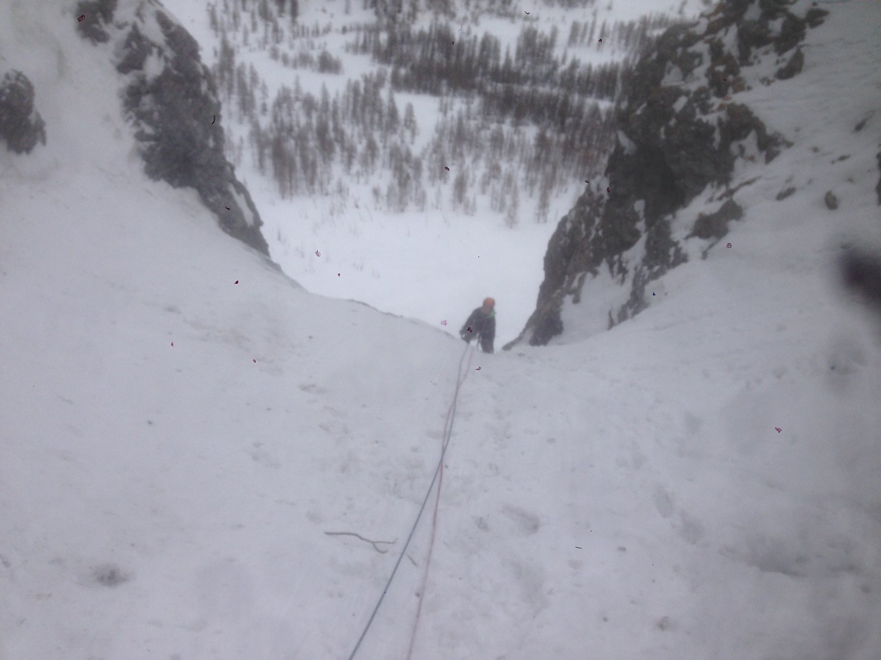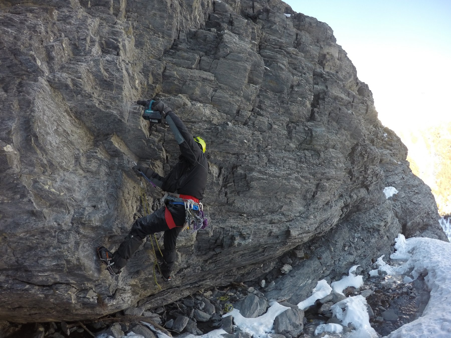 Il salto inferiore si discende con una doppia su abalakov o, se in neve, disarrampicando.