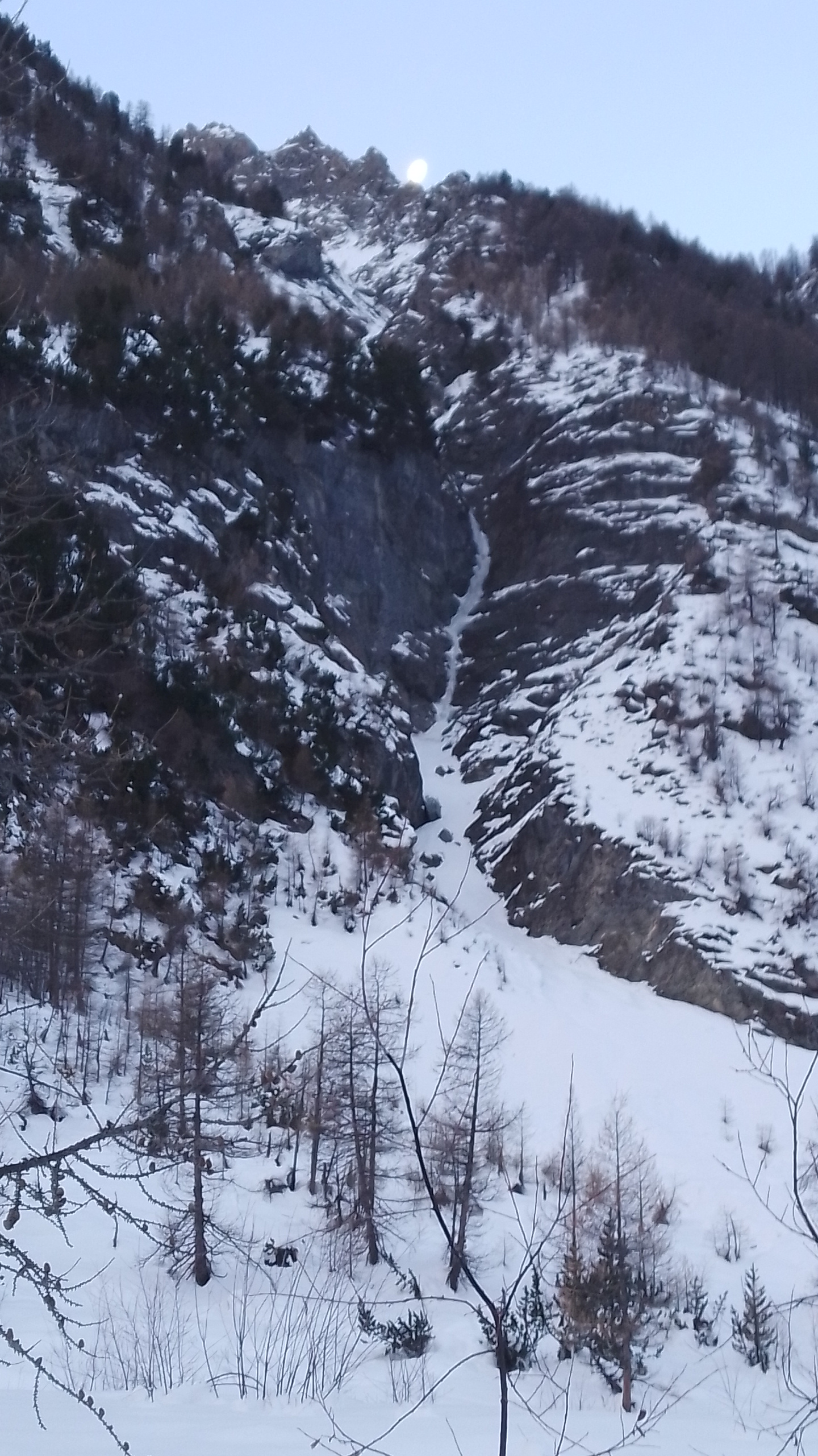 Ideale per le prime esperienze, è oggi diventata la classica della valle, percorsa dall’autunno alla primavera. I pericoli oggettivi sono limitati con neve assestata.