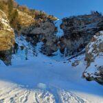 Discesa: comodamente a piedi dalla sommità, sulla destra orografica, fino a ripassare sotto l’attacco. Oppure in doppia dalle soste attrezzate e poi su abalakov.