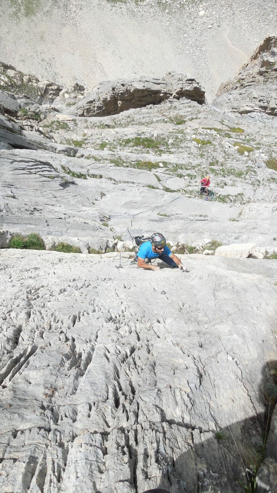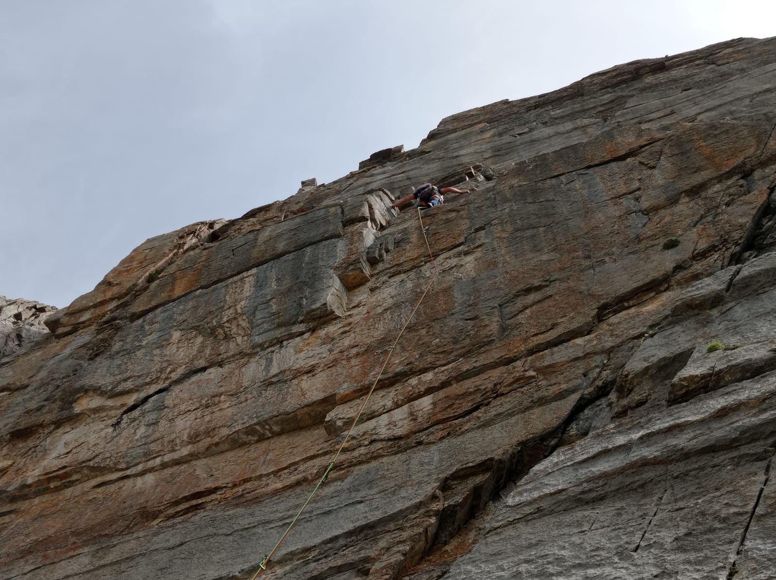 Prestare attenzione ad i massi instabili lungo i tiri facili e sulla cresta finale.