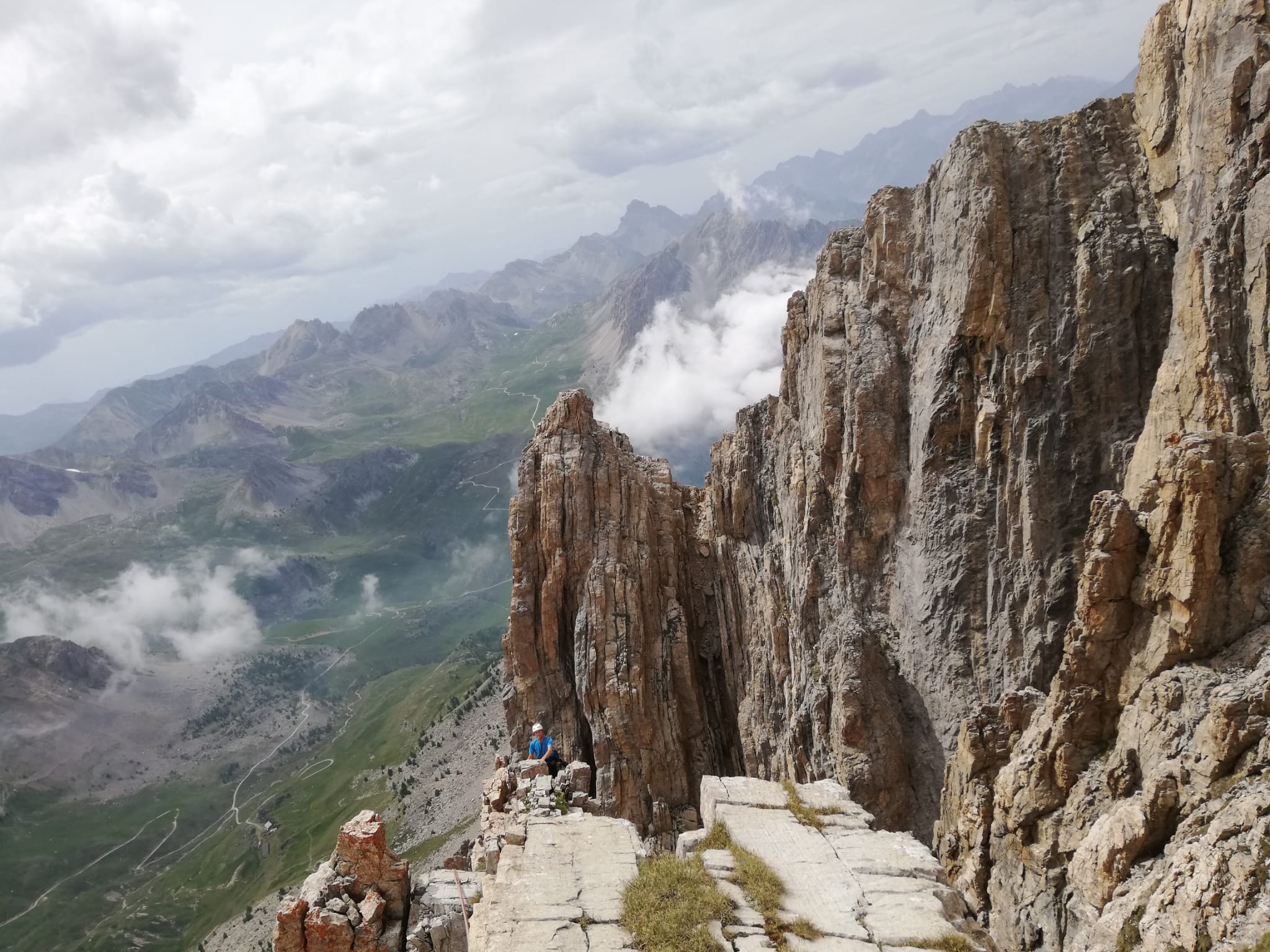 - L9 proseguire sempre in cresta senza mai scendere ai lati, sosta sul filo ( evidente con cordone) 45m _ 1 fix_ III