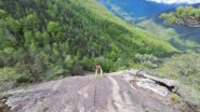 Dalle vie si può scendere a piedi (uscendo a dx, bolli) oppure in doppia (max 25m di calata).