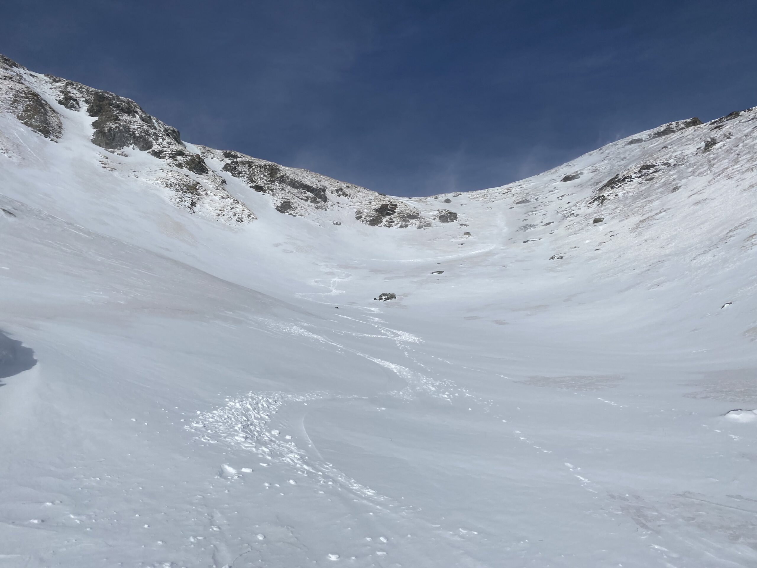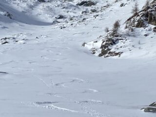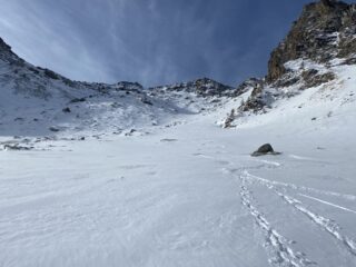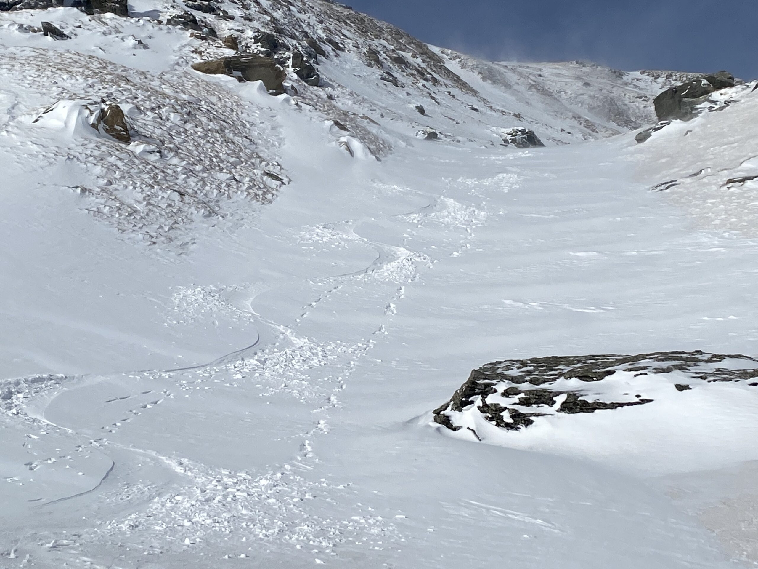 discesa su neve dura con 10cm di neve fresca spostata dal vento.