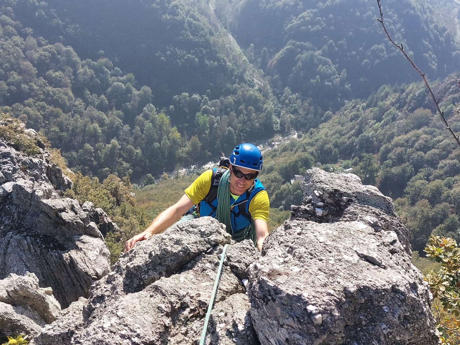 Pochi spit, qualche vecchio chiodo. Difficile da individuare il percorso in diversi punti, anche se alla fine non c’è un itinerario obbligato. Molte vie di fuga su tutto il tracciato. Roccia non buona nei primissimi tiri, poi migliora decisamente, quarzite con ciottoli bianchi sporgenti, con ottimo grip per le suole, attenzione a diverse lame instabili. Via da integrare, anche se in alcuni tratti non è facile inserire protezioni veloci. Per la descrizione completa si rimanda alla relazione sul libro di Igor Napoli.